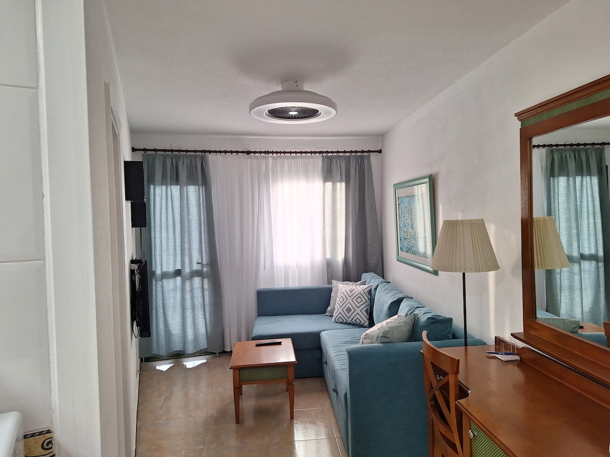 Aire acondicionado, smart TV 55" fibra internet.En una zona muy céntrica y tranquila. Acogedor con sala de estar con sofa cama y dormitorio con cama de matrimonio, cocina y baño independiente, dispone de un restaurante todo dentro de un hotel. Ubicado frente a un centro comercial con farmacias ,mercados, restaurantes, discotecas y al lado de la playa. Situado en el sur de la isla en unos de los puntos más turisticos y visitados. Dispone de Piscinas una para adultos y otra para niños