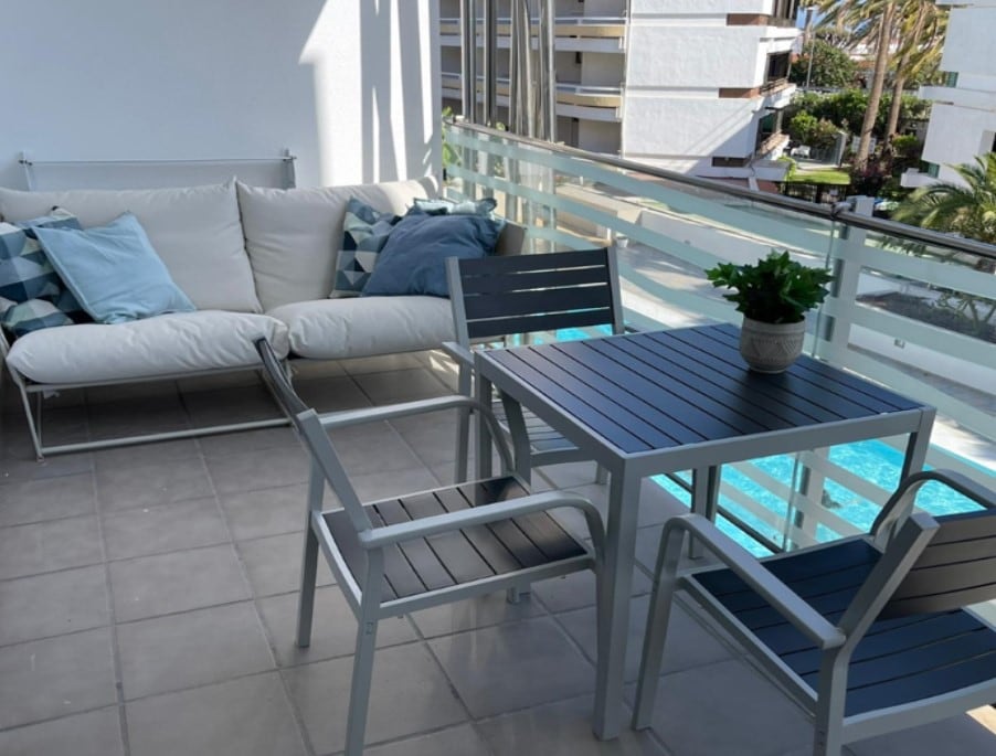 Apartment 100m2 with sea view and direct beach access in PLAYA DEL AGUILA. A corner of paradise with an exceptional climate all the year. Peaceful location that's ideal for families and romantic getaways. Come and recharge to the fullest! Large living room with full equipped kitchen and sofa bed for two people 1 bedroom suite with complete bathroom 1 double bedroom with 2 beds 1 bathroom with shower 2 terraces with ocean view All common areas as swimming pool and deck chairs have free access.