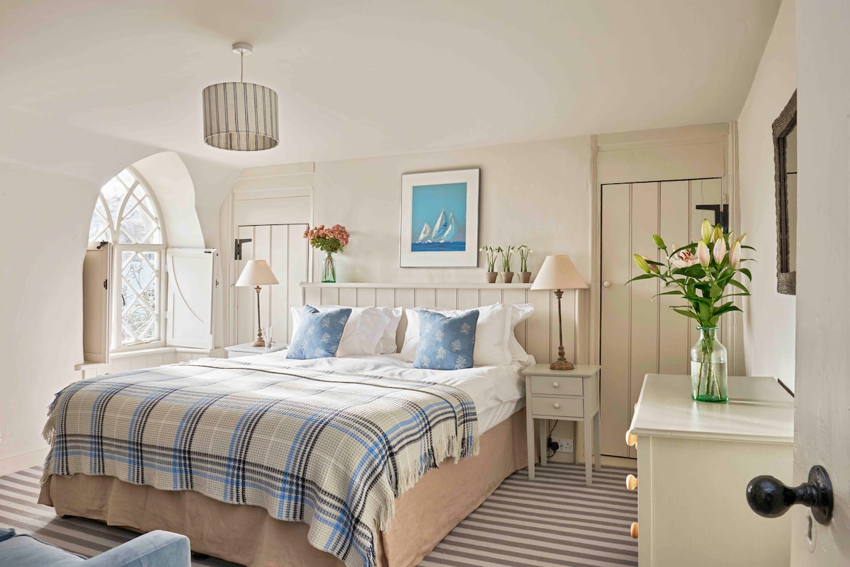 Discover the charm of 'Persuasion' where pages of Jane Austen’s classic novel came to life. Enjoy an unparalleled sea view experience, 1800s period character & airy comfort. Relax in a chic living area with high vaulted ceiling, exposed wooden beams & modern kitchen. Behind wide opening French doors find a turret-style bedroom offering sea views & sounds. Bathroom with bath & shower, Harry Potter-esque entrance hall & stairs. A central stay yet tranquil. Ideal for romantics, solo adventurers.
