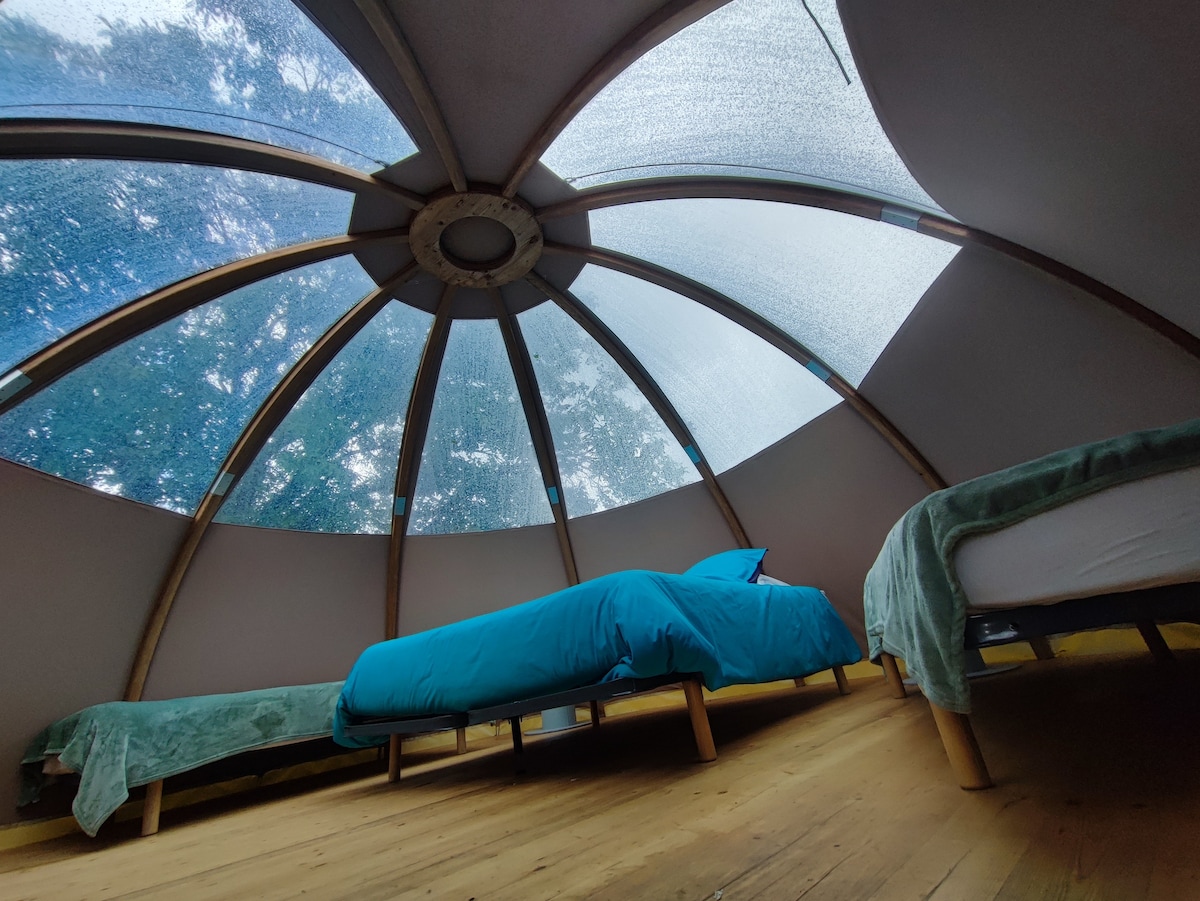 Bienvenue au Dôme Lune de La Canopée du Mont ! 🌙⭐️💫 Grand et Magnifique Dôme, fabrication française, très joliment décoré, Poêle à bois. 🪵 🔥 Chaleur assurée même en hiver ❄️ Romantisme à la campagne, au calme, à 26 km du Mont Saint-Michel et 45 minutes de Rennes. Options, tarif pour 2 personnes : - Séance de 45 minutes à l’Espace sauna : 45 euros - Séance d’1h de bain nordique : 59 € Petit-déjeuner pour 2 : 29 € Planche apéro, dîner raclette, panier pique-nique dînatoire