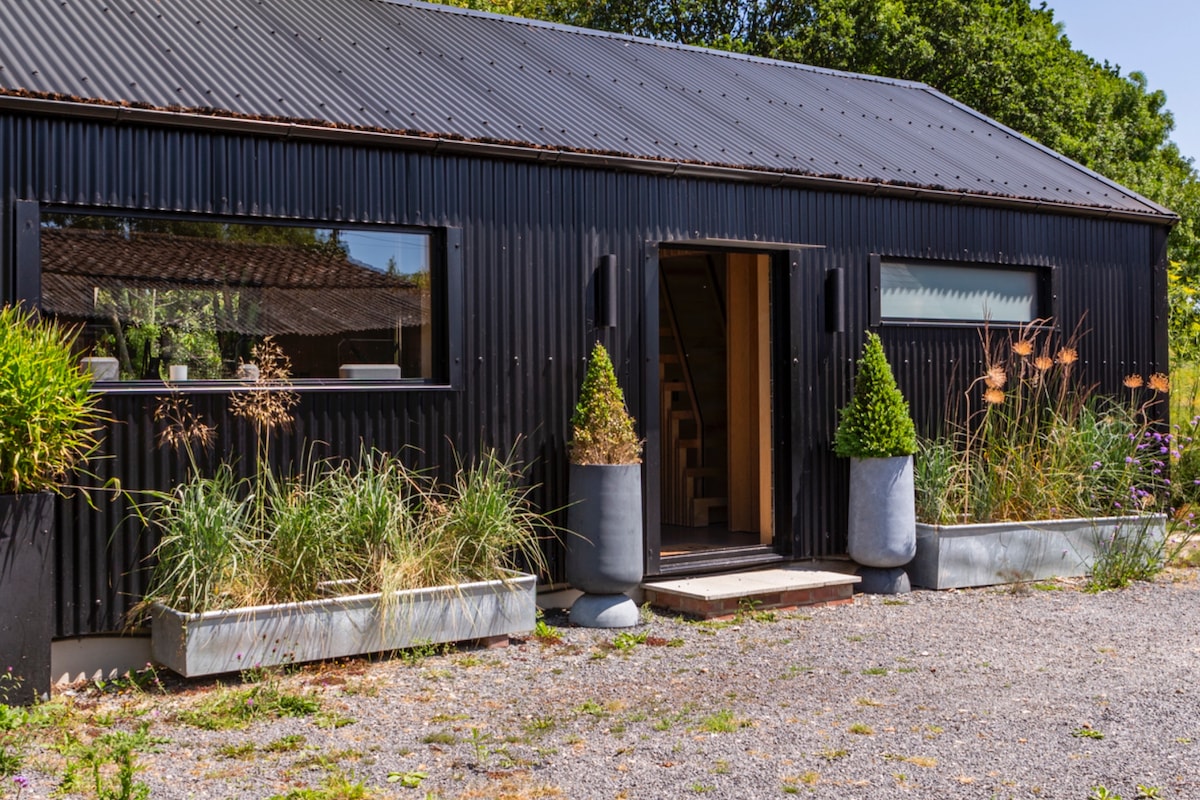 the SHED is really anything but a shed. Built on the site of a former stables, the shed is a bespoke design and build, constructed in 2020 /2021. Built next to a nature pond and coppice within an AONB, living in the shed connects you to the beauty of the natural world. The shed is all about serenity, luxury craftsmanship and escapism. Outside there is a private terrace with Pizza oven, BBQ and outdoor dining and living area.