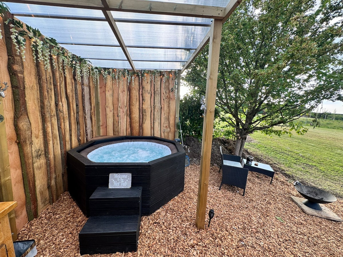 ADULTS ONLY Minty is an idyllic getaway with its romantic feel and stunning lakeside nature reserve view. The hut has a warm cosy double bed, storage, hanging rail and kettle with complimentary tea and coffee. Snuggle up under the soft blankets provided and enjoy a golden glass of wine in front of your log fire. Outside you can fully relax under the stars in the Hot Tub or snuggle up on the sofa with your blankets. Minty has a gas hobs, fridge/freezer, utensils, pots and pans and picnic bench.
