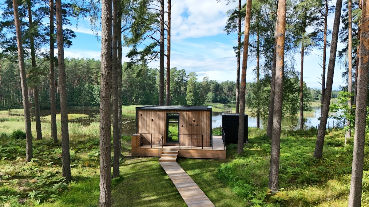 Forget your worries in this spacious and serene space. The recreation area is suitable both for active leisure enthusiasts and for those who wish to be alone with themselves, enjoy the silence, and take a breath of fresh air. The territory of the recreation complex is designed in such a way that guests of neighboring houses do not disturb each other – there are plantings and small hills between the houses. The residential area is surrounded by untouched nature.