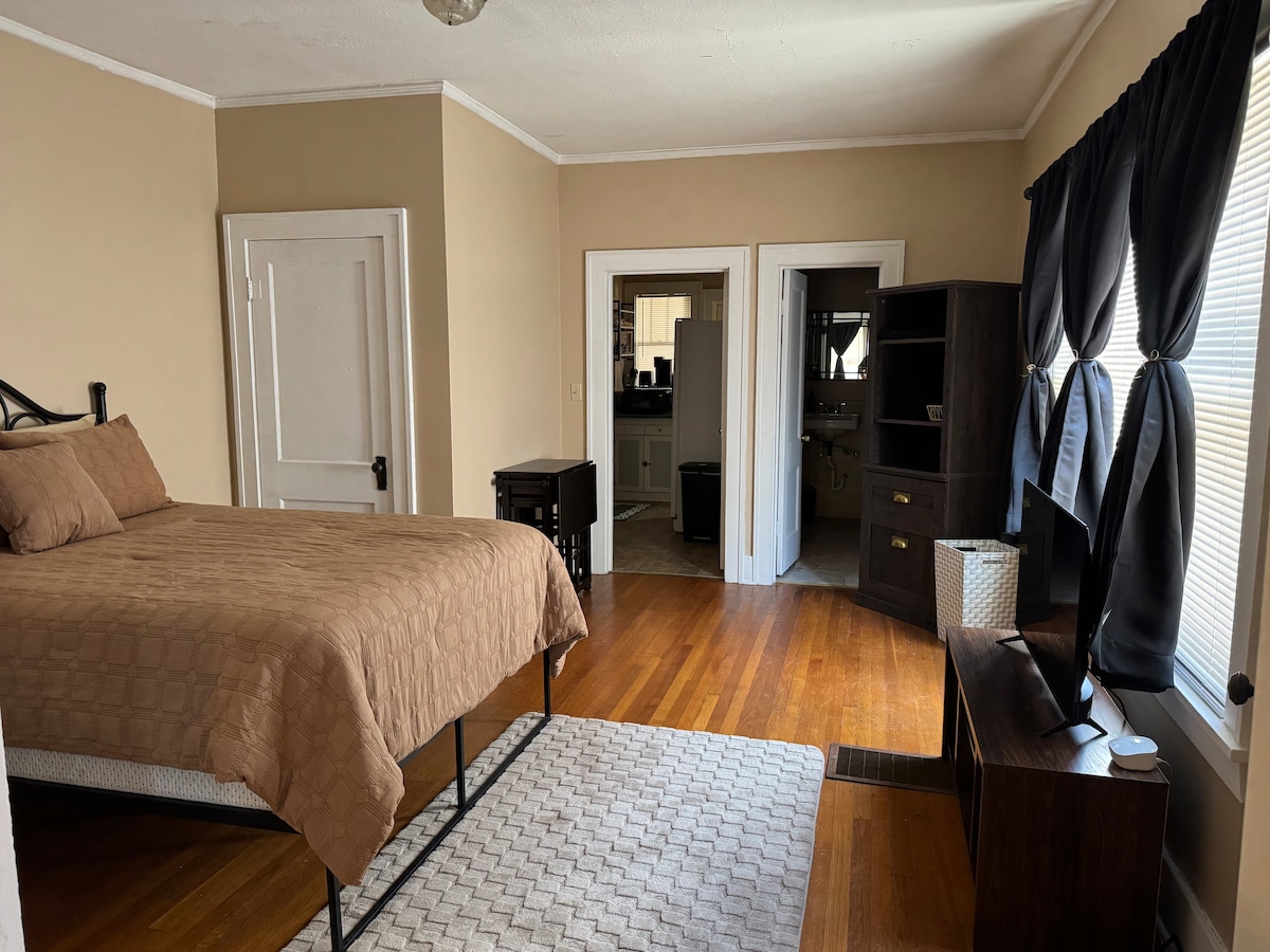 Fun, stylish, blingy and all things boujee describe this unique experience at this centrally-located place. Small but mighty, this one bedroom has everything you'll need for your stay, including a full bath with large shower, washer and dryer, completely updated and remodeled everything, including a fully functional kitchen! One of three apartments located in this "triplex", inlcuding a fenced in back yard, ample street parking as well as designated off-street parking, this place has it all!