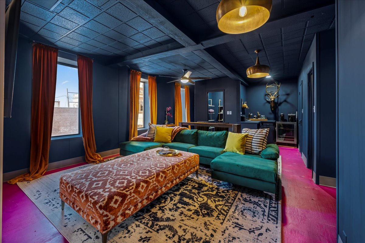 The Honey Hole, a secret space, lush in texture and nestled centrally downtown by all the best spots. This UPSTAIRS apartment is located in the heart of Downtown Enid. Walking distance to several great eateries and shops, David Allen Memorial Baseball Field, The “ONE” Christmas Tree and so much more. You’ll find yourself not wanting to leave this space, lush in texture with eclectic vibes, it’s not for the lover of beige. Colorful hues fill each room, with moody vibes.