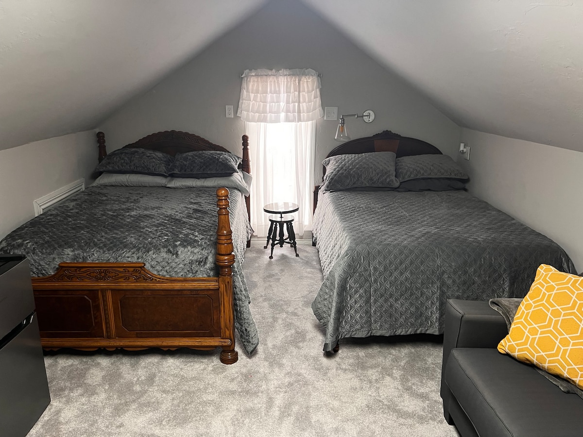This historic home is gorgeously updated. One bedroom is downstairs, three are upstairs with a full bath on each level. No expense was spared when this beautiful home was remodeled so you’ll experience modern luxury with historic charm. A backyard with a grill, firepit and Adirondack chairs provide another great place to gather, along with a front porch. (Note, there is a staircase to the basement with no door, not suitable for small children or bring a baby gate.)