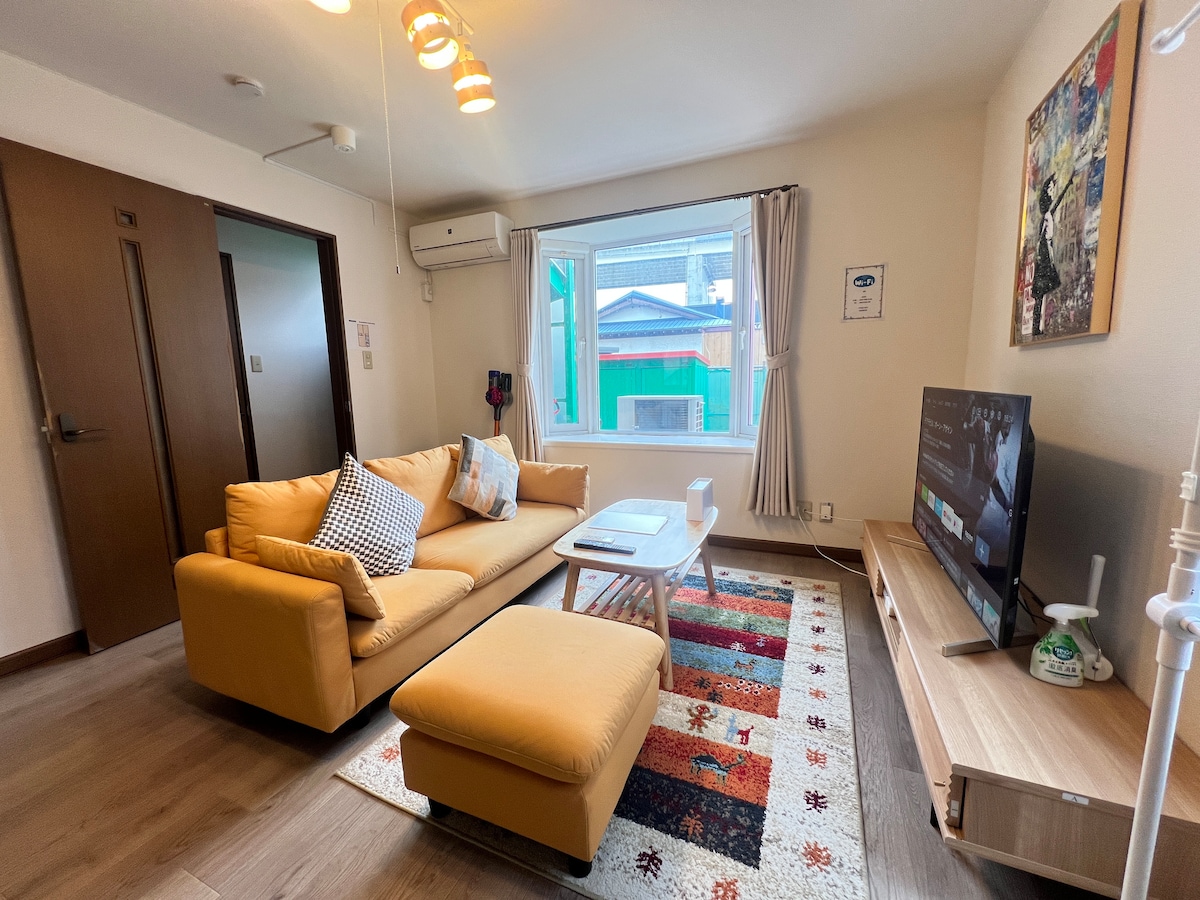女性が一人旅や出張などで安心してご宿泊いただけるようにセッティングした1DK30㎡のお部屋です。 ●ソファやベッドは、座り心地や寝心地の良いものを。 ●リビングの照明は、明るさと色の調整ができるものを。 ●テレビはNetflixやAmazon prime対応(アカウントが必要です)のものを。 など、いつも清潔で気持ちの良いお部屋を心がけています(^^) さらに特徴として、 ●風呂トイレ別 ●冷凍庫付冷蔵庫 ●1台10役の電気調理鍋 ●朝から夕方まで明るい3面彩光 ●洗濯機+軽掃除用品 ●駐車場無料 ●荷物の受取/配送可能 など、少し長めのご滞在でも『暮らしている』かのようにお過ごしいただけるお部屋です。 ただ『快適ではない』ところもありまして、エレベーター無しの3階のお部屋のため、階段をご利用いただくことになります。予めご了承くださいm(_ _)m