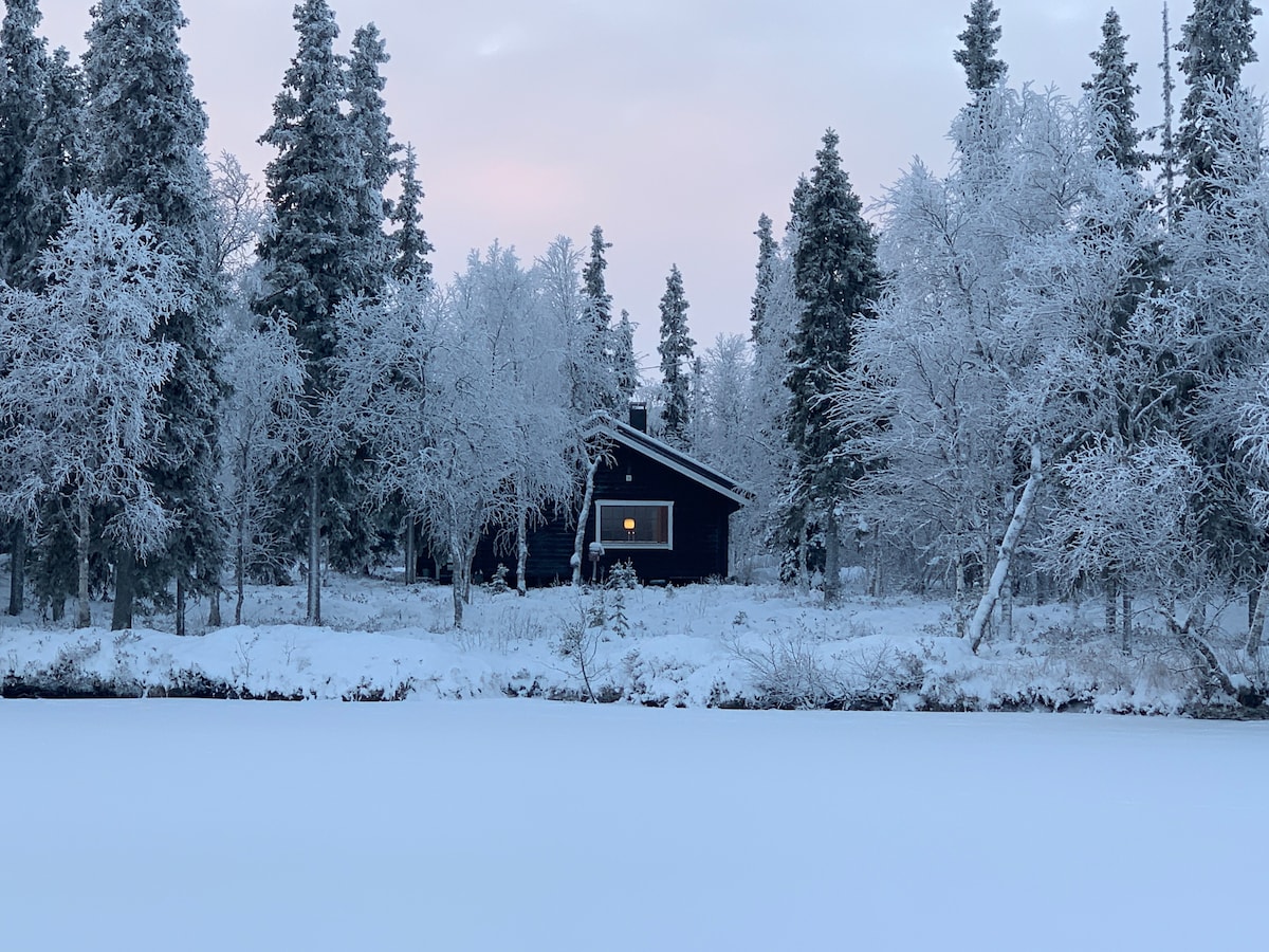 Small cozy cottage in the woods by a lake. 4 beds. 14 km from Kiruna C. 10 km to Ice hotel. Perfect to see midnight sun and northern lights. Peace and relaxation. Nice sauna can be rented for 800 sek - needs to be booked at least one day in advance. Takes 4-6 hours to heat. Own car or rental car is required. Or transport by taxi. No bus connection available. Nearest grocery store is in Kiruna C (15 km) or in Jukkasjärvi (10 km). We also have the his cabin https://www.airbnb.com/l/iZTZ2mpc