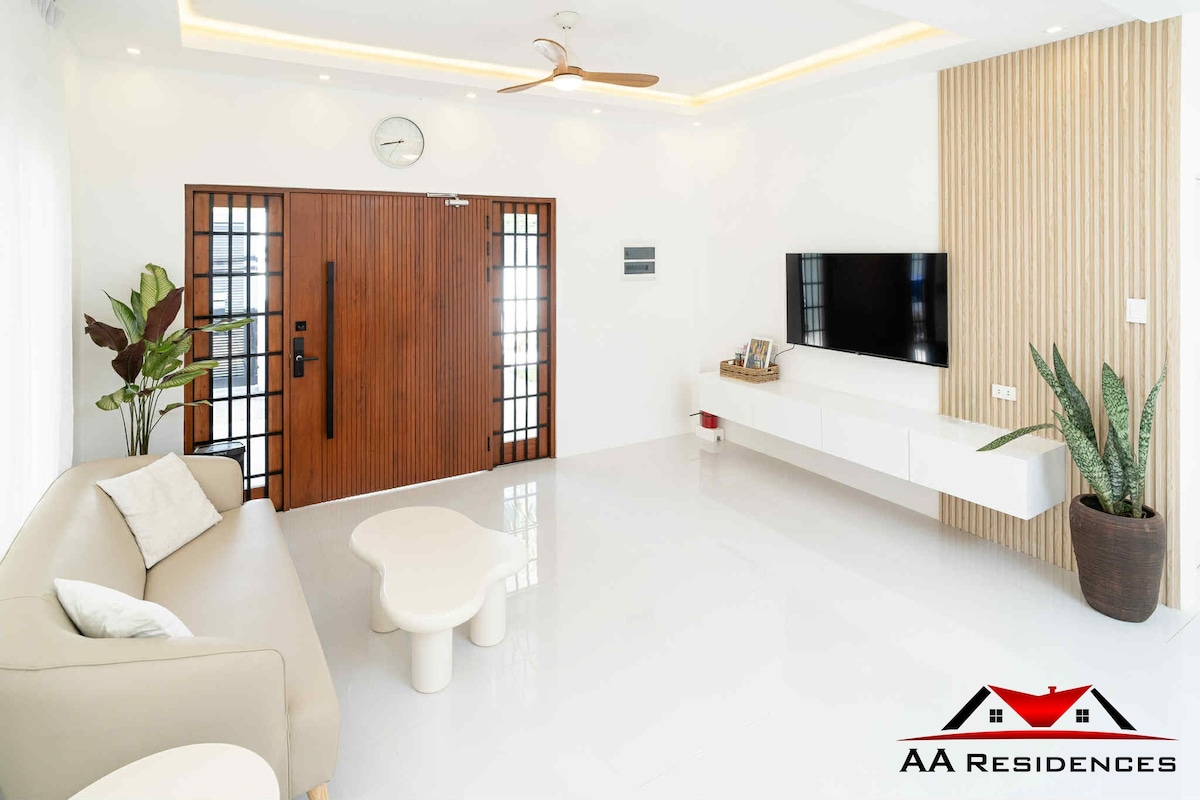 Welcome to this spacious and comfortable Airbnb home located near Bacolod's renowned Kyle's Eatery. With its high ceiling and cozy ambiance, this place offers plenty of extra room for a truly relaxing stay. Perfect for business travelers or families, this intimate accommodation features a staircase design, on a double height space complemented high window that fills the airy space with natural light. The classic furniture with accent mosaic wall adds a touch of elegance to the ambiance.