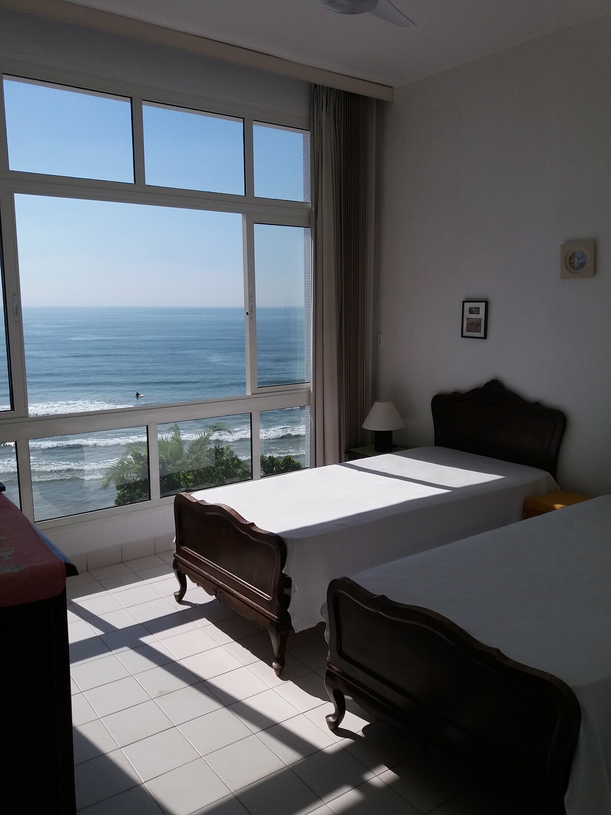 Este lindo apto de frente para o mar em andar alto tem uma vista espetacular para as praias de Pitangueiras e Astúrias. Tanto sala quanto quarto têm total abertura para uma varanda ampla com espaço para duas redes e uma incrível visão do horizonte. Não perca a chance de ver um nascer do sol inspirador e a lua refletindo diretamente no mar. Este espaço vai ganhar seu coração e ficar para sempre nas suas lembranças. Perfeito para casais e famílias.