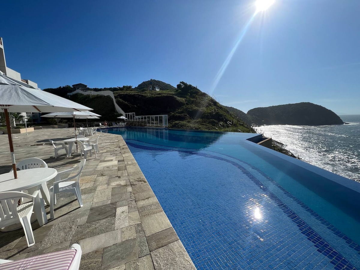Condomínio/Resort a Beira Mar, na Praia da Enseada. Todo conforto e segurança para sua estadia a beira mar. Condomínio completo, serviços de praia, wifi, restaurantes e bares a apenas alguns passos de distância. Garagem fechada, segurança 24 horas!