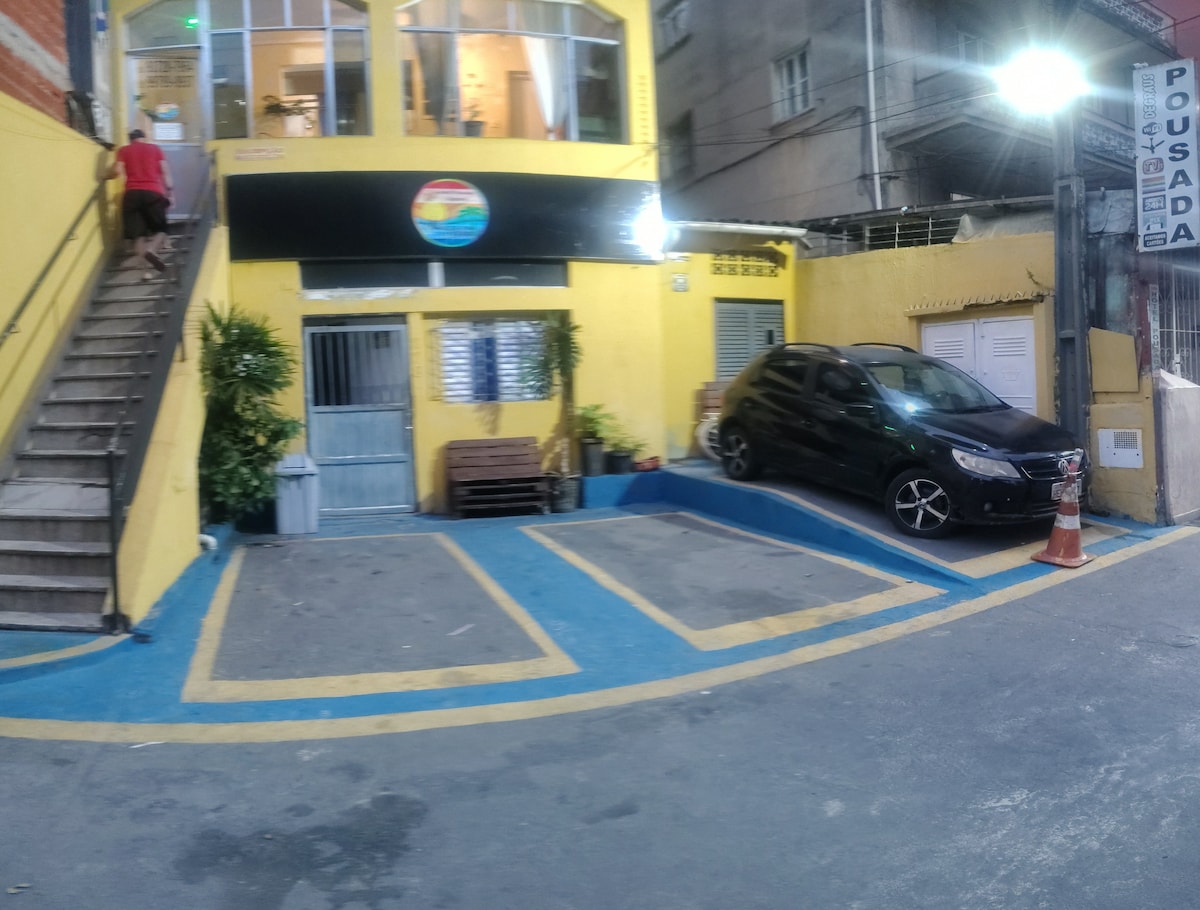 Encante-se com este lugar para ficar. Na Pompéia, quadra da praia, 3 min de caminhada, quarto com cama King, banheiro privativo, próximo de uma enorme variedade de comércios, shoppings , bares, restaurantes, farmácias, banco, enfim tudo o que vc precisar. Da para fazer tudo literalmente a pé. Estacionamento pago no local com uma taxa de 35$ dia , o hotel tbm dispõe de um delicioso café da manhã pagos à parte por um valor de 38$ por pessoa, que não estão inclusos na hospedagem.