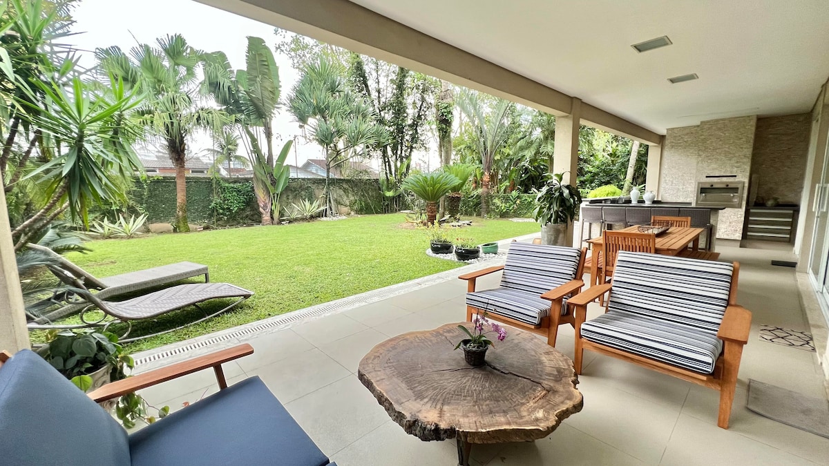 Conforto, tranquilidade e segurança! Uma linda casa em um terreno de 1000m2, aconchegante, perfeita para a família, no melhor condomínio fechado do Guarujá, com toda a infraestrutura para seu descanso e diversão. O condomínio fica a cerca de 400 metros da praia de Pernambuco e próximo a vários comércios, entretenimento e turismo local. Todos os quartos e a sala de TV tem ar condicionado NÃO ACEITAMOS RESERVAS PARA FESTAS E EVENTOS O número de hóspedes combinados na reserva deve ser respeitado