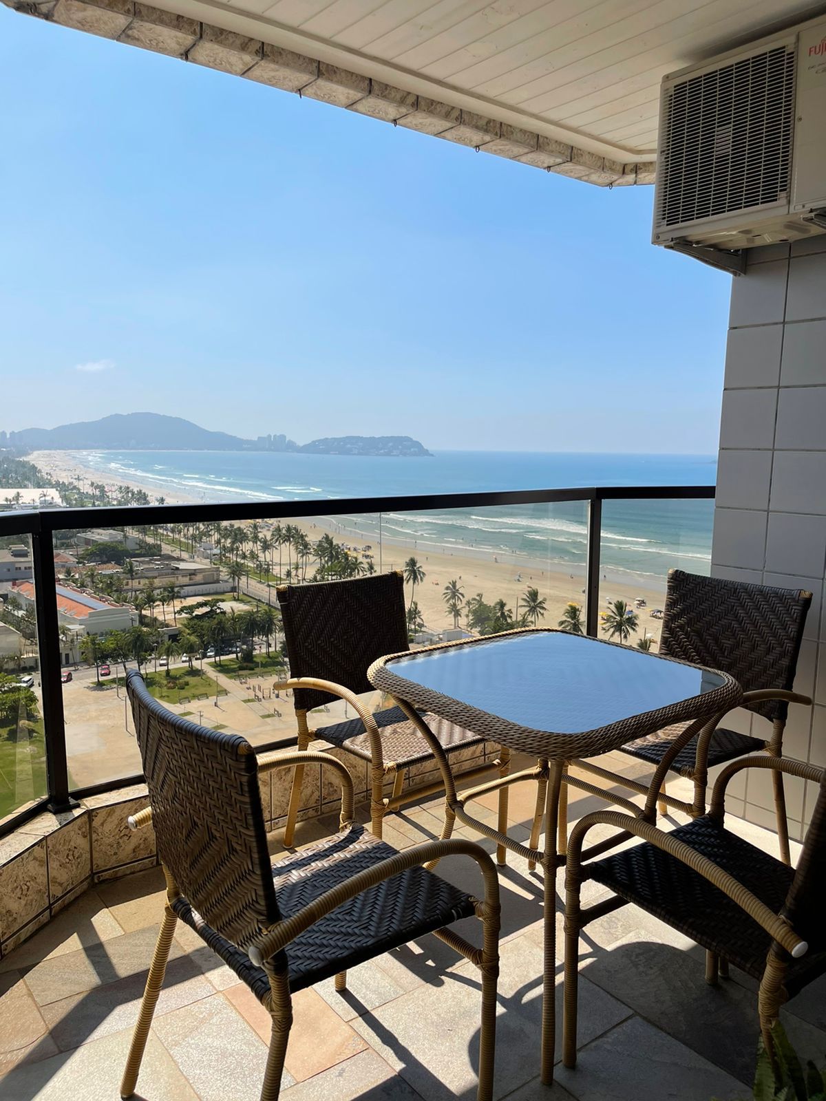 AP de 80m² no 22° andar, com terraço panorâmico e fantástica vista frontal para a praia de Pitangueiras e, mais ao fundo, as Astúrias. Localização privilegiada (Morro do Maluf) que une tranquilidade a proximidade às comodidades dos serviços e comércio desta praia. Está a apenas 800m do Shopping La Plage e a 300m do início da Enseada. 1 vaga de garagem coberta, serviço de praia (guarda-sol e cadeiras) e portaria 24h. Wi-Fi. Não recebe pets. Possui ventilador e Ar-cond no quarto. Oxxo 24h a 750m.