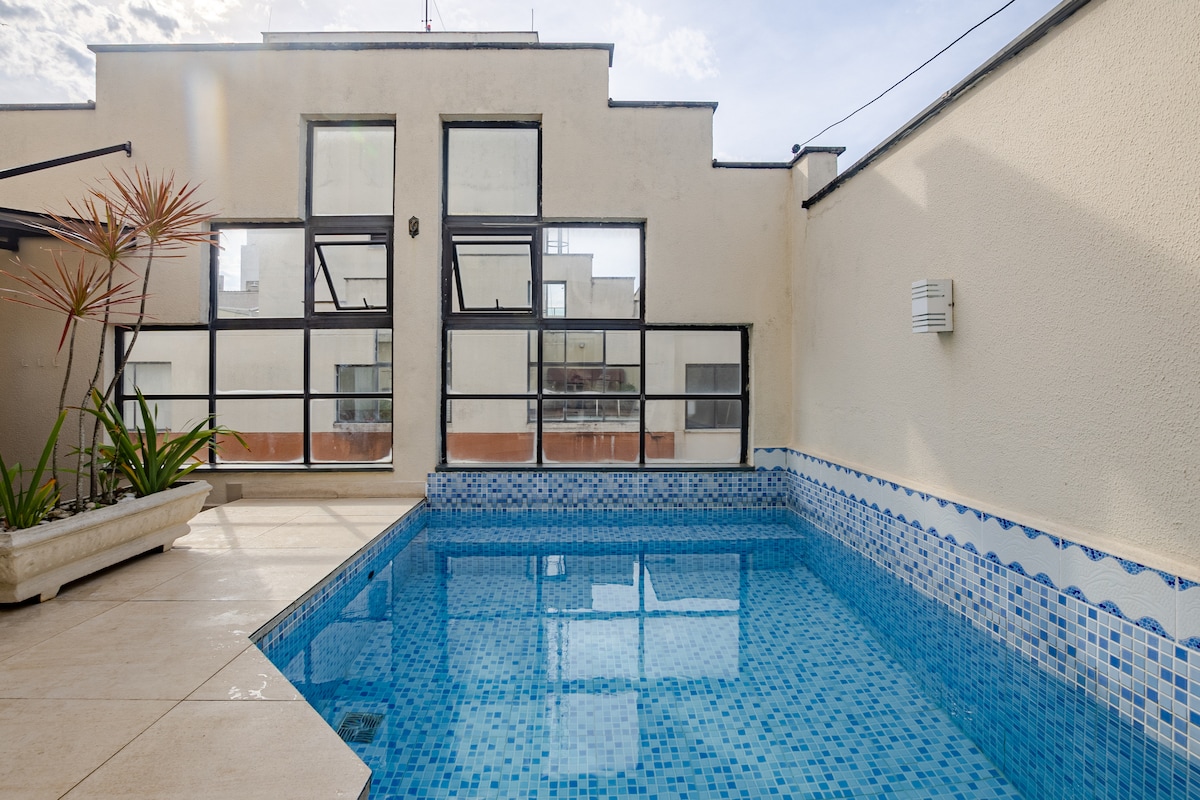 This 55m² apartment is ideal for couples and executives on business trips. It has everything you'd expect from an apartment: practicality and technology. For those coming to spend New Year's Eve in Santos, you can enjoy the festivities without even leaving the building. From the pool area, you can enjoy the sea view, the fireworks, and the city's festive atmosphere without having to deal with traffic, crowds, or a tiring commute after the fireworks.