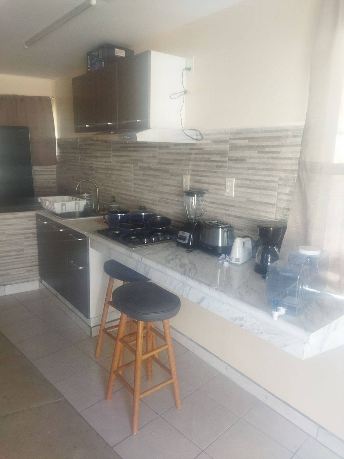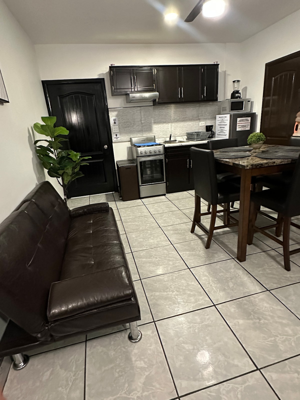 An amazing apartment with luxury ammenities such as smart TV, wifi, a/c private access to back patio, private free parking, 24h external surveillance camera with inside security alarm that can be disable/enable remotly. We are located only 5 min drive to downtown Ensenada and about 15 min drive to the road that leads to the Valle of Guadalupe wineries. It is located in a quiet and secure neighborhood.
