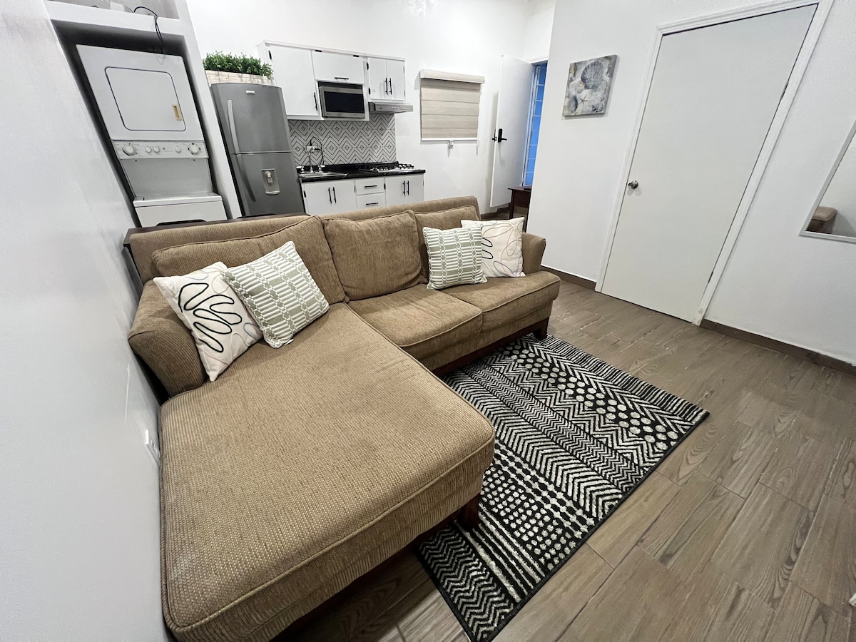 An amazing apartment with luxury ammenities such as smart TV, wifi, a/c private access to back patio, private free parking, 24h external surveillance camera with inside security alarm that can be disable/enable remotly. We are located only 5 min drive to downtown Ensenada and about 15 min drive to the road that leads to the Valle of Guadalupe wineries. It is located in a quiet and secure neighborhood.