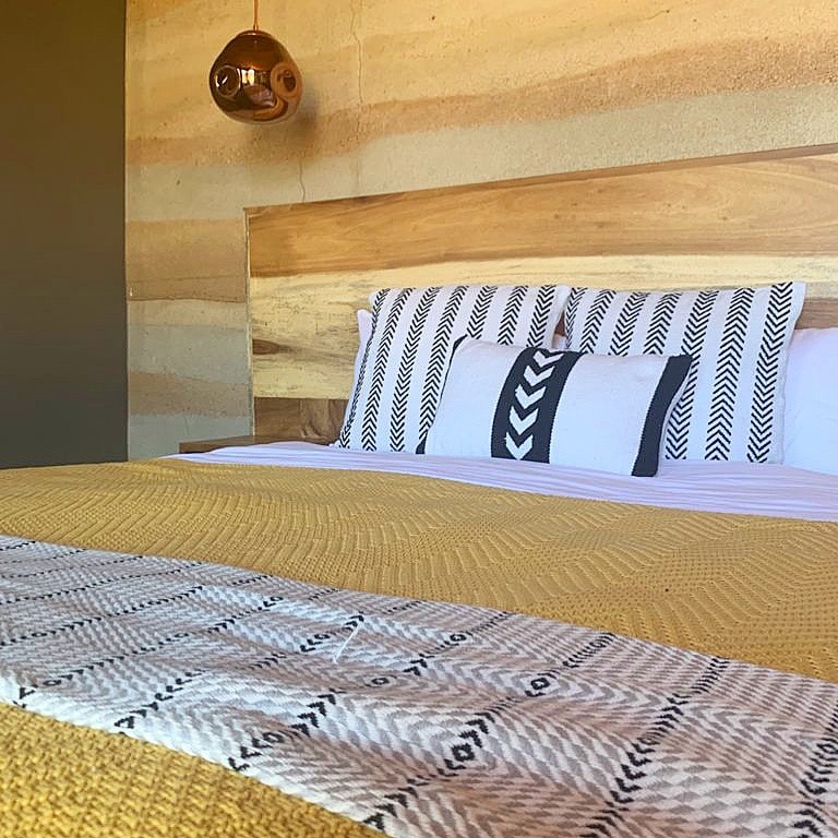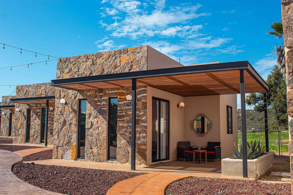 Completely new 40 m2 luxury room with unique amenities, designed to have a pleasant rest and experience the atmosphere of the Valle de Guadalupe. Suitable for two people in a Queen bed, air conditioning available, reading area with 2 sofas in a very cozy and clean space, coffee maker available. The bathroom is modern and spacious equipped with amenities such as: vanity mirror, soap, shampoo, conditioner, and hand towels.