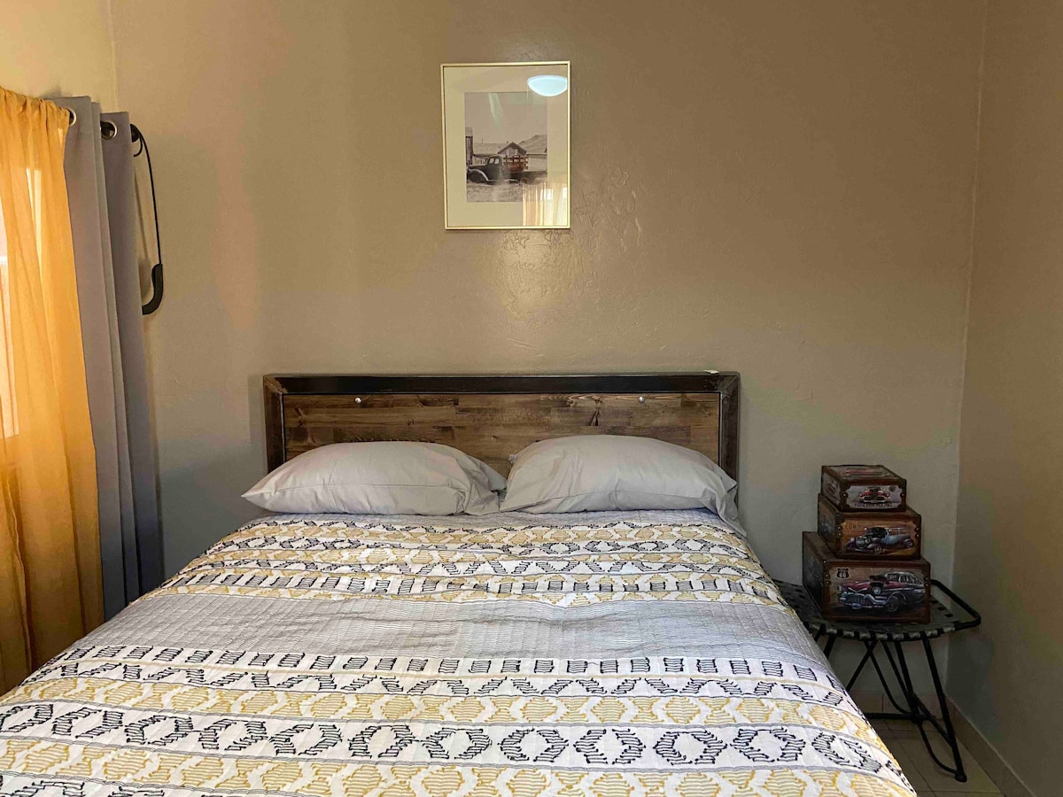 Disfruta de la sencillez de este alojamiento tranquilo y céntrico. Estacionamiento seguro para su auto, lugar limpio, con calentador de agua, utensilios básicos de cocina, refrigerador, estufa, microondas, cafetera, TV, WiFi, atendido con respeto y respuesta inmediata a sus necesidades