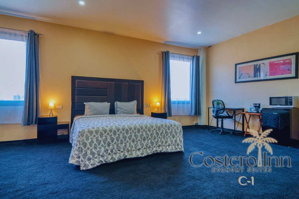 La Habitación C5 es una de las más amplias de Costero Inn, ideal para parejas que buscan comodidad y excelente ubicación en Ensenada. Cuenta con cama King size, balcón privado con vista al Boulevard Costero, baño privado, aire acondicionado, Smart TV con Netflix y Disney+, WiFi de alta velocidad y refrigerador con espacio para congelador pequeño. Acceso digital sin contacto. A pasos del malecón y calle Primera. Pregunta por nuestros servicios adicionales para parejas y cumpleaños.