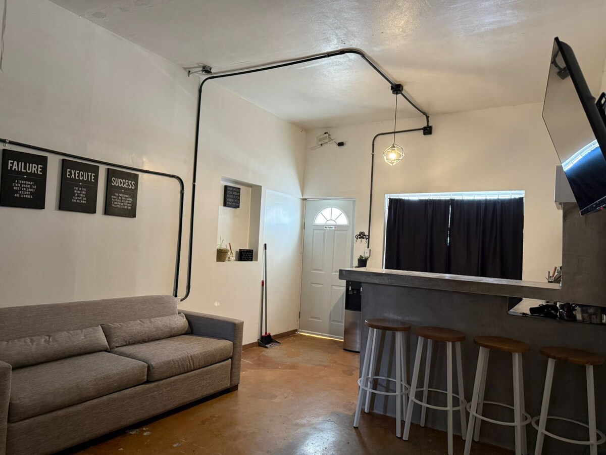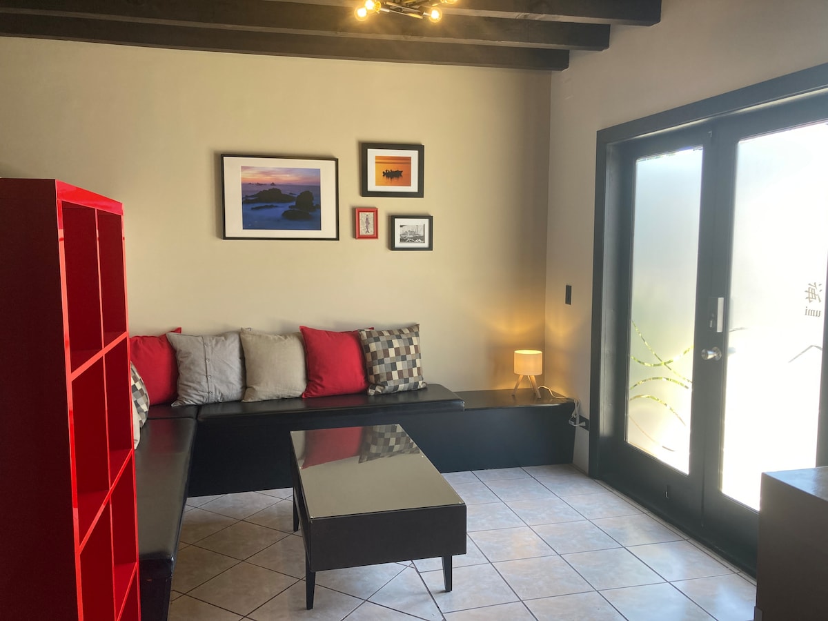 The space is disinfected before and after each stay. A very secure loft, on private property. Has an independent entrance. In the hearth of downtown Ensenada, will take a five minute walk from to get to places like “Malecón” and the tourist area. Public transportation on the corner of the loft. There is a sleeping room with a full bathroom, a dining room and kitchen. Downstairs there is another living room and patio with a grill and bar. Private parking inside the property for one car.