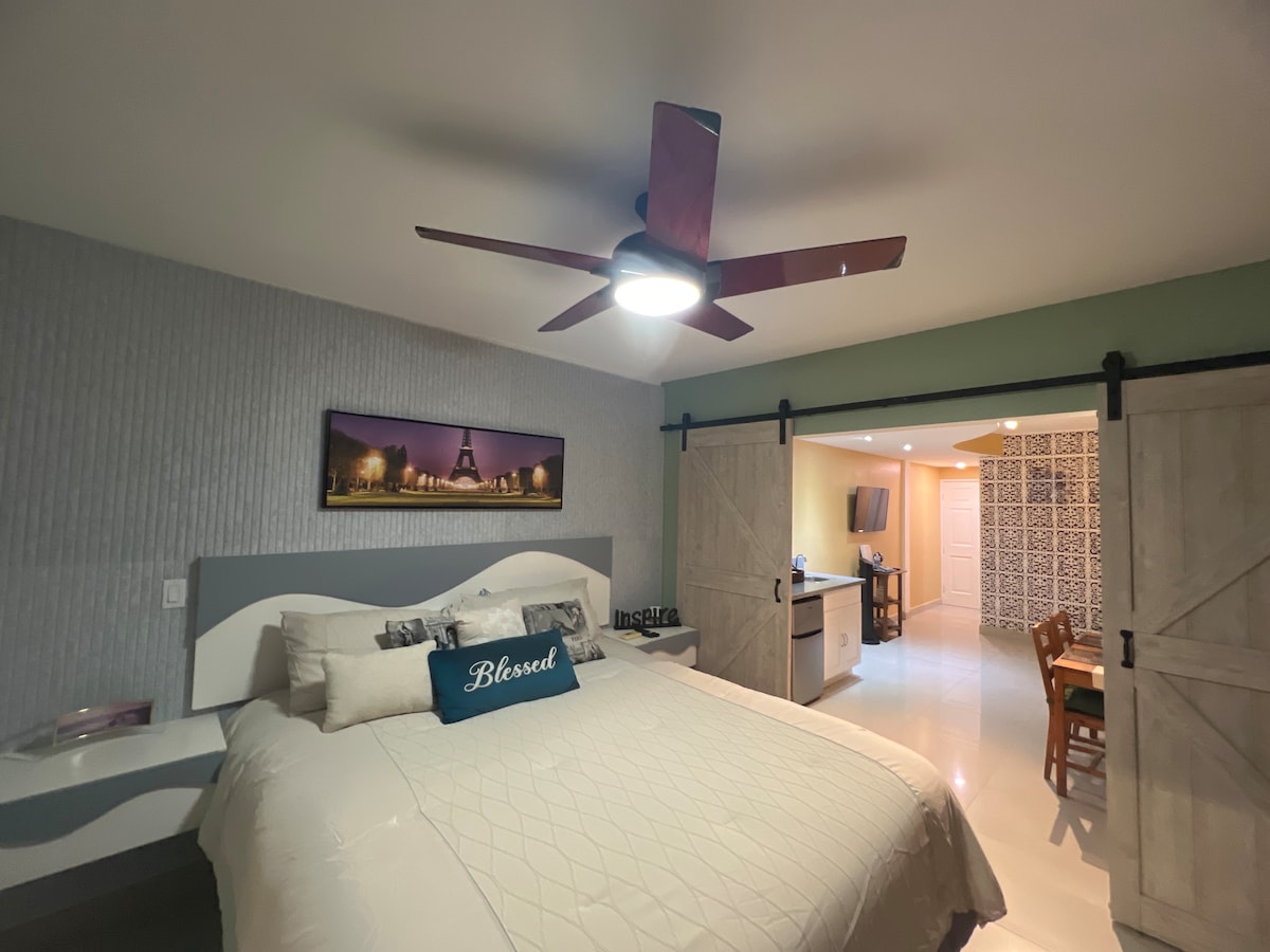 Departamento estudio ubicado en zona centro y turística. Aire acondicionado , Recién Remodelado, rejas, para su seguridad. Una cuadra de la calle principal (calle 1ra ) Riviera, Cearte y Casino Caliente. A 2 cuadras de Blvd Costero, Malecón, Ventana al Mar y la bandera. Cuenta con estacionamiento exclusivo enrejado , y cámaras de vigilancia; cruzar,7eleven,CAFFENIO,reprosterias, jugos ,restaurantes, gasolinera, cafeterias,etc. .WIFI fibra óptica, ethernet. A 25 min. Valle Gpe Puede haber ruido