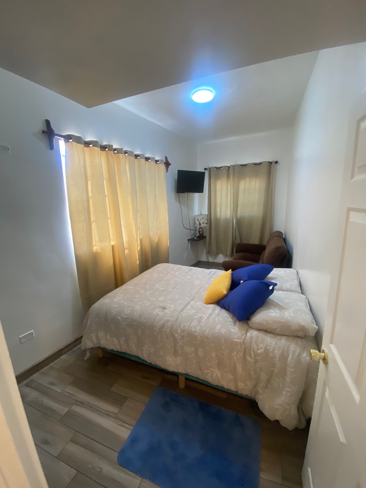 Espectacular espacio creado para un descanso placentero y tranquilo. Ubicado dentro de una zona privada y muy segura.Antes de llegar podrás tener la mejor vista de la ciudad, estamos ubicados en una colina. Espacio independiente con una terraza privada para disfrutar de hermosos atardeceres, tv Smart (Netflix y YouTube),sofá-cama y cama matrimonial, espacio para parrillada y pasar un rato agradable y tranquilo con tu familia y mascotas espacio! Si requieres colchón inflable por favor indícanos