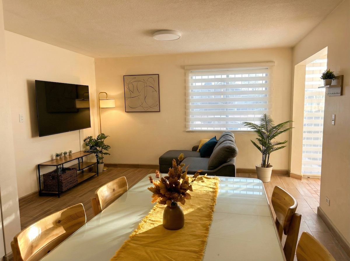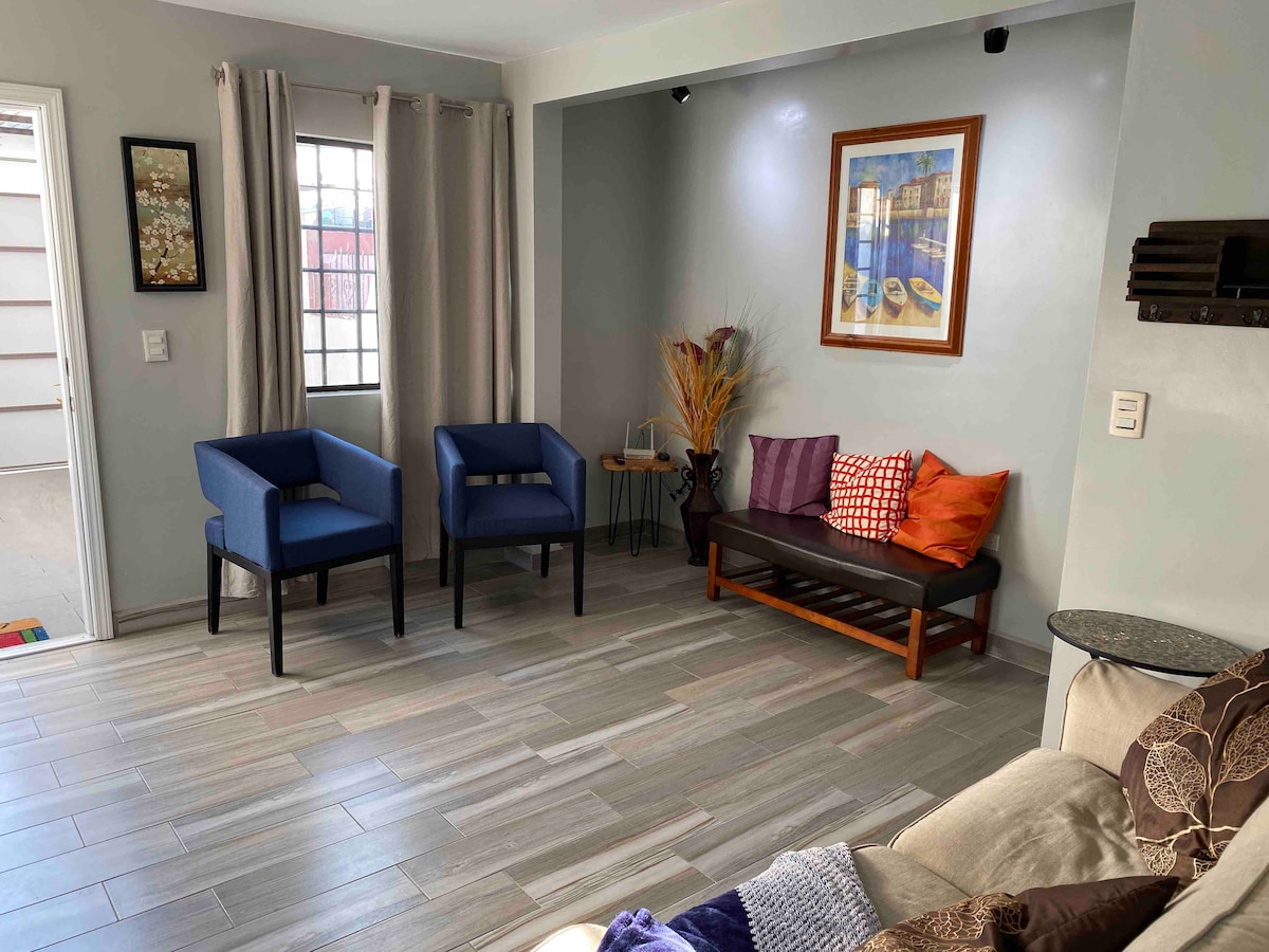 An amazing apartment with luxury ammenities such as smart TV, wifi, a/c private access to back patio, private free parking, 24h external surveillance camera with inside security alarm that can be disable/enable remotly. We are located only 5 min drive to downtown Ensenada and about 15 min drive to the road that leads to the Valle of Guadalupe wineries. It is located in a quiet and secure neighborhood.