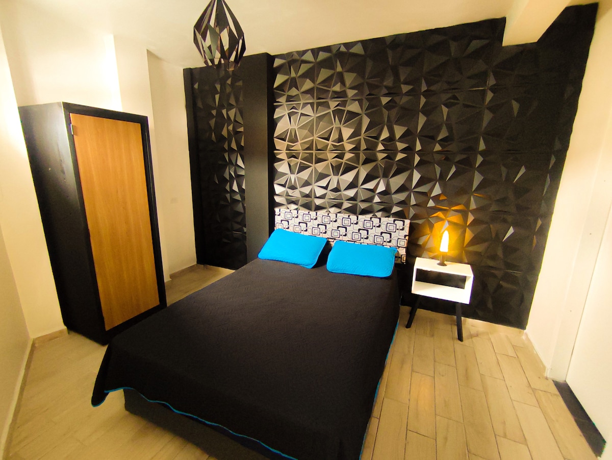 Welcome to our luxury and comfortable studio, designed to provide 5-star experiences for couples. With a King size bed, rain waterfall shower with perfect pressure and temperature, high-speed Wi-Fi, complementary coffee service, sofa-bed for kids, premium finishes and rotating TV, this studio is better than any hotel room or suite. This is a new unit that was finished in October of 2023, with everything out-of-the-box brand new. The stay includes private gated parking. Located at Casas Sanblu.