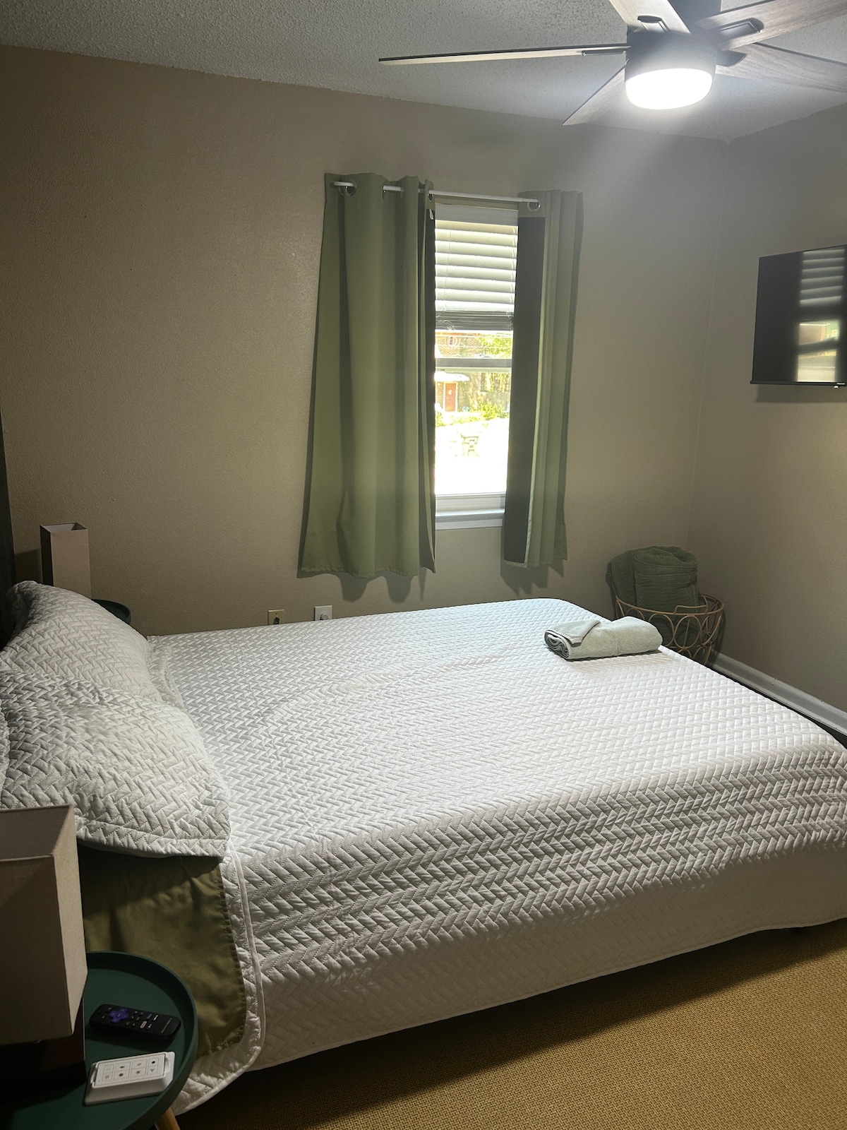 A comfortable, clean, and fully equipped 1-bedroom guesthouse with a private entrance, full kitchen, and everything you need to feel at home. Guests love the cozy atmosphere, peaceful location, and easy access to I-10, downtown Pensacola, and the beaches. Many of our guests return again and again because of the comfort, safety, and convenience this space offers. Non smokers only. small pets allowed provided they are potty trained and non destructive. 1 queen bed, 1 full size futon in living area