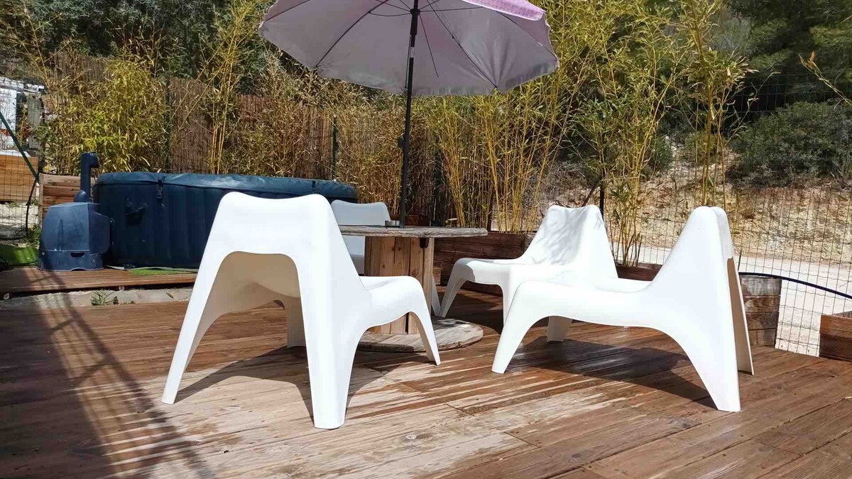 Escape to the breathtaking Blue Coast and experience Provence in a studio thoughtfully designed by architect owners. Wake up to stunning hill & sea views from your private terrace and enjoy all the modern comforts. Walk to the sandy beach and explore the coves with a complimentary sea kayak. Conveniently located 10 minutes from the local train station and 25 minutes from Marseille airport with free parking. An unforgettable adventure awaits on the Blue Coast of Provence!