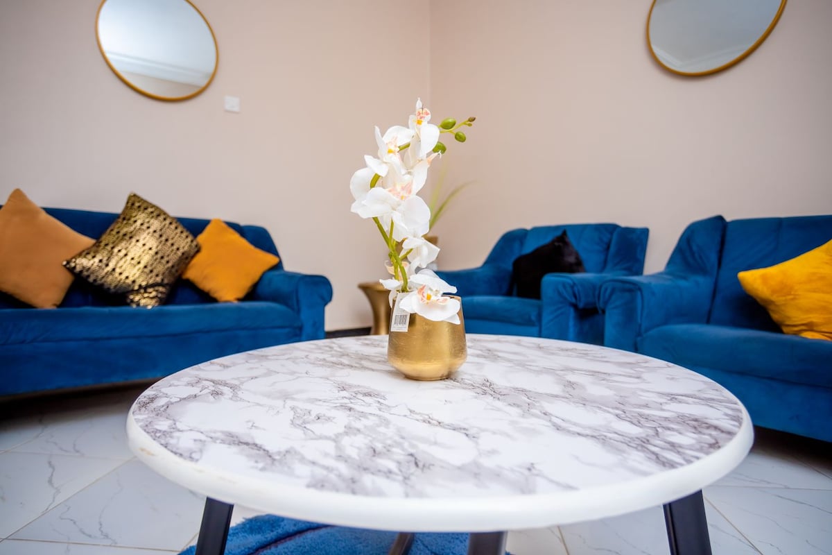 Kick back and relax in this calm, stylish space. we are 10 minute drive from Ebb International airport, airport transfers for $15, 48hr Solar Power backup, Unlimited free fast wifi, a patio to chill and enjoy the cool breeze from the lake, giant washer for those dirty cloth, space with modern furnishings, a sofa,King size beds, well equipped kitchen, Hot and Cold Ensuite Bath and choice to order anything. Enjoy Your stay at this calm, peaceful, be it for work, holiday or solitude space