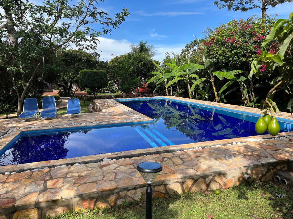 Villa Bugonga is situated in the prime area of Entebbe next to the Golf Course and Imperial Beach, yet only 4.5 km from the Airport. The roof terrace offers a great view of Lake Victoria. We have the best private swimming pool in Entebbe, a fully equipped gym, and a beautiful garden with a variety of exotic birds and fruit trees, all available for free picking for our guests. We maintain the highest security standards approved by the United Nations Department for Safety and Security (UNDSS).
