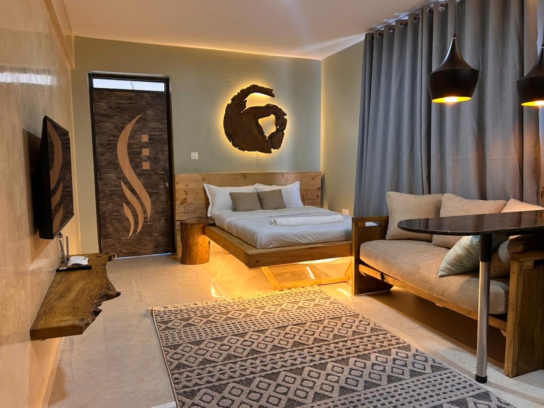 Thoughtfully designed Studio apartment where style meets comfort. Perfect for travelers who crave calm, beauty, and a touch of luxury. Located opposite the UN Base in Entebbe, within Hidden Treasure Serviced Apartments and only 6–8 minutes from the airport. The area is safe, peaceful, and ideal for both short and long stays☺️