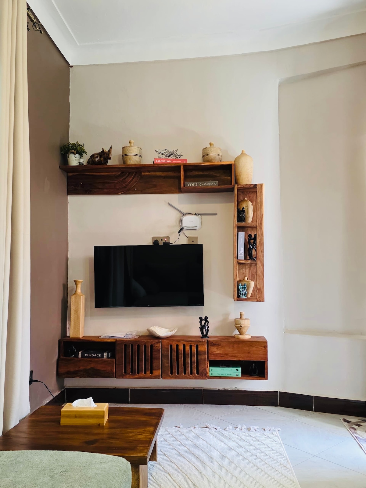 This Aesthetic One Bedroom Apartment is located in Naalya Estate near Quality Supermarket. It's a few minutes drive to the northern bypass connection leading you to the Airport via Express Highway and close to Acacia Mall, nice restaurants and bars nearby. There are also a number of alternative routes to the city center. The amenities are; - All kitchen appliances eg. Rice cooker, Coffee machine, Blender - Fast Speed WI-FI - 55inch Samsung smart tv - Samsung sound bar - Washing Machine