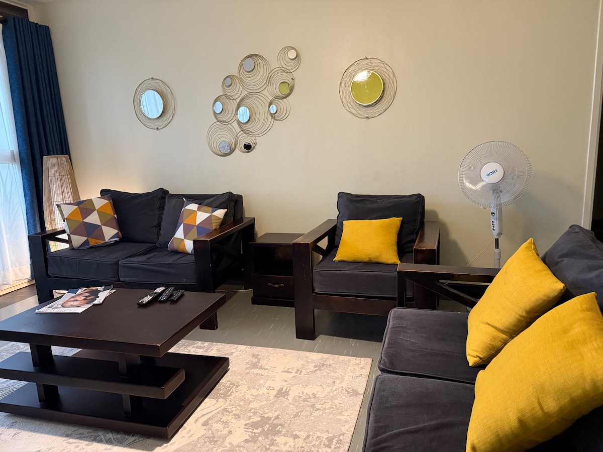 A beautiful two bedroom ground floor apartment that is conducive to host families and friends. Located in Naalya Estate, a few minutes drive to the northern bypass connection leading you to the Airport via Express Highway and close to Acacia Mall, nice restaurants & bars nearby. There are also a number of alternative routes to the city center. The amenities are; - All kitchen appliances eg. Rice cooker, blender, coffee machine - Fast Speed WI-FI - 55inch Samsung smart tv - Washing Machine