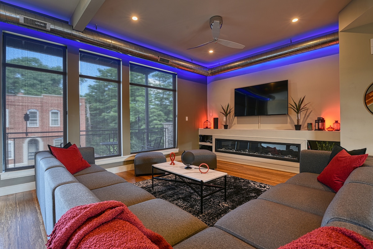 You and your group will adore this stunning & spacious downtown 4th floor loft located right on the popular Washington Avenue in St. Louis! You will be in a prime location and can walk to so many restaurants, cafes, shops, bars, and even attractions like The City Museum and Union Station! Cozy up on the plush couch, turn on the gas fireplace, and enjoy a gorgeous sunset view right from the living room! With a spa tub, luxury bedding/towels/bath robes, and furnishings…you won’t want to leave!