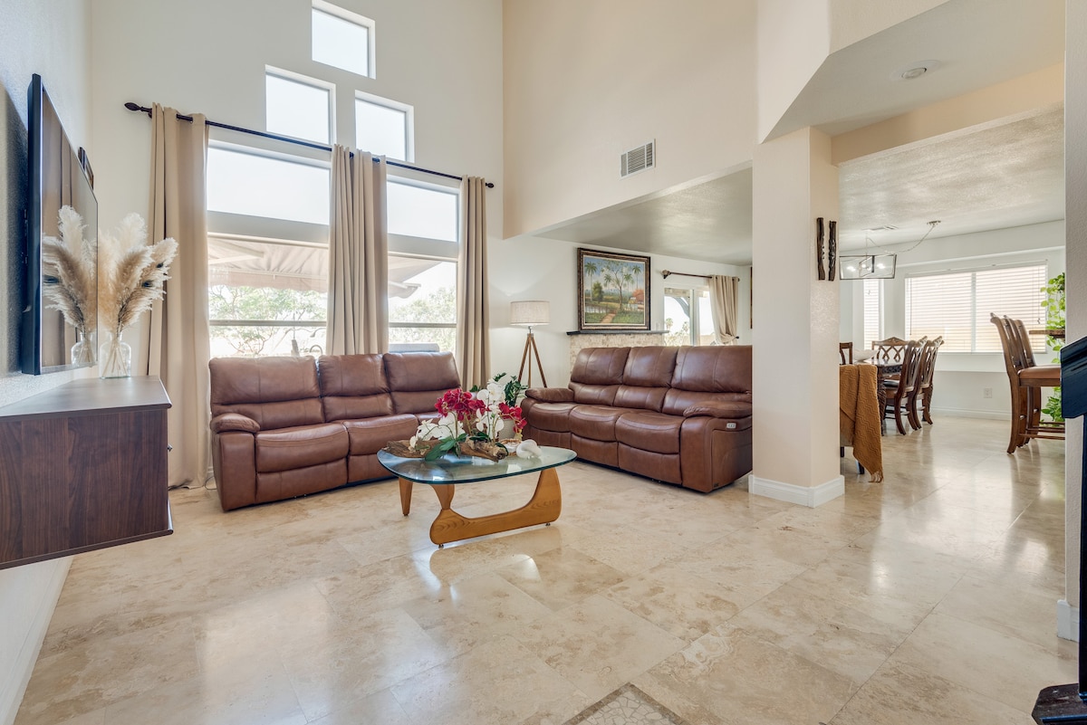 This beautifully decorated home in the southwest is the perfect escape needed to host you and your family. It is approximately 25 minutes from the airport and strip, and conveniently located near parks, grocery stores, and restaurants. You can relax inside, or make use of the covered patio in the backyard.