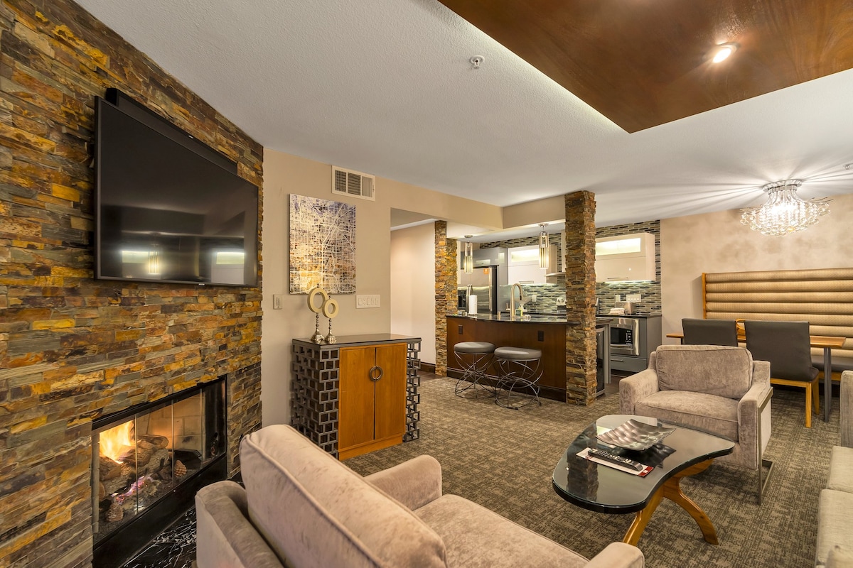 Enjoy our contemporary luxury suite at a family & business-friendly resort just 1 block from the central Vegas strip. The Sphere, Caesars, Venetian Expo, & many convention centers are just a glimpse of what you can visit nearby. The suite has everything you may desire while all resort features are available. ✔ Patio (1st Floor)/Balcony (2nd & 3rd Floor) ✔ Fireplace ✔ 2 King Beds & 1 Sleeper Sofa ✔ 5 Swimming Pools w/ Splash Feature ✔ Activity Center ✔ 2 Gyms ✔ Restaurant & Bar ✔ Mini Mart