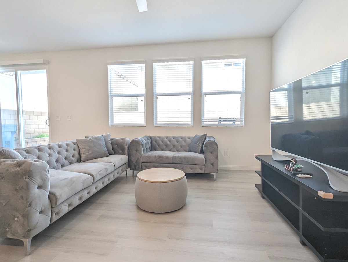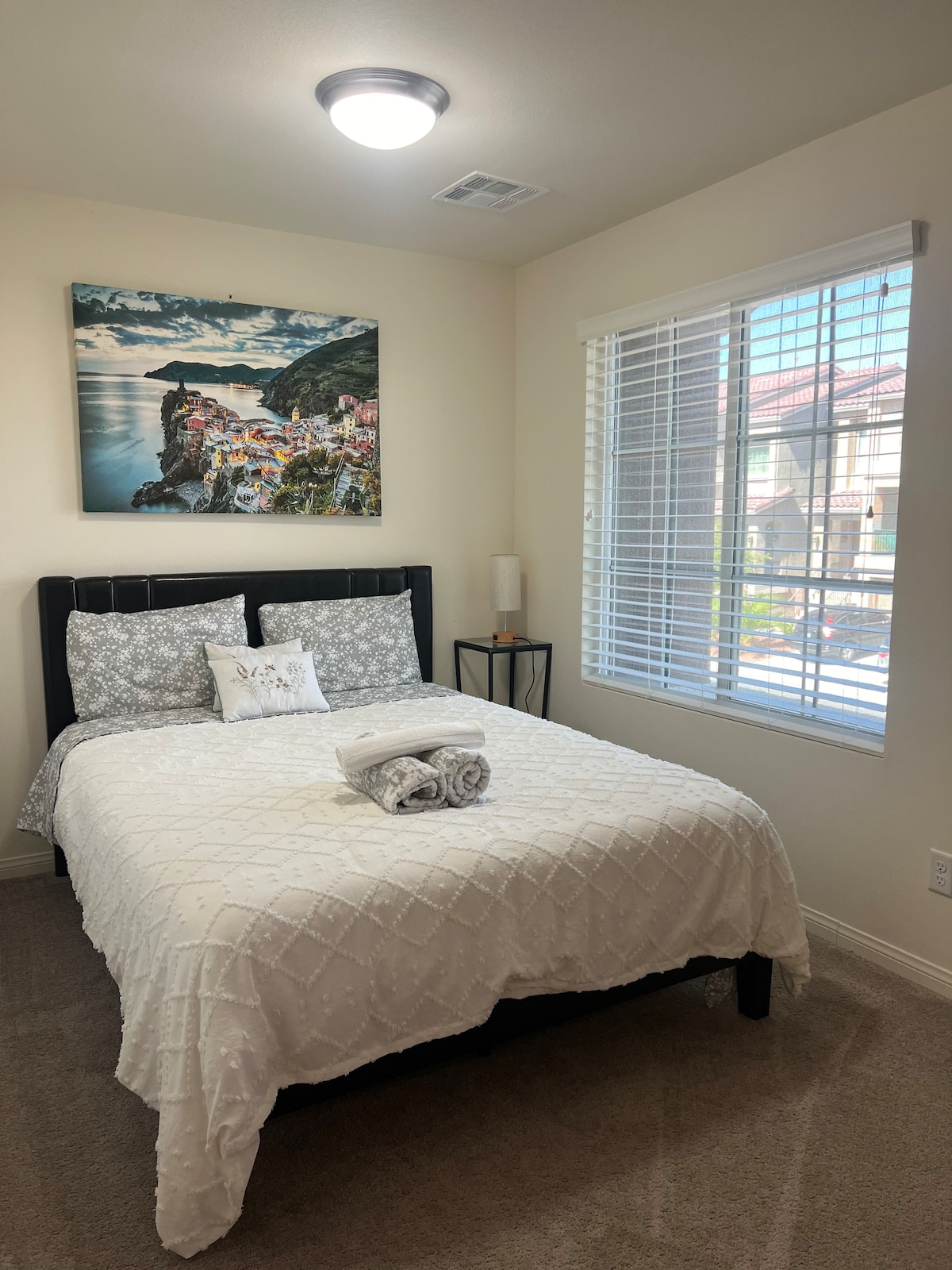 Experience tranquility in our bright and cozy upstairs unit with private access, nestled in the heart of Silverado Ranch! Relax on the large patio with a BBQ, overlooking a serene backyard, perfect for morning coffee or evening drinks. The flexible second bedroom doubles as an office, ideal for remote work. Located just 13 minutes from the airport and close to shopping and dining, our home offers convenience and comfort. Enjoy the spacious living room and dining area for a truly relaxing stay.