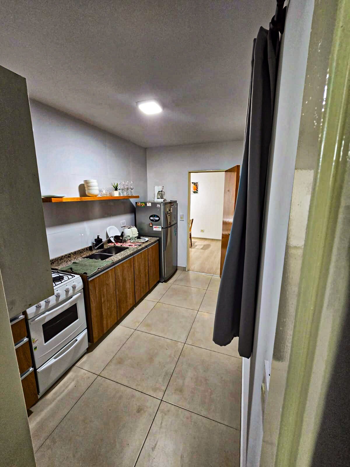 Departamento piso 2, amplio con vista a parque privado, comodidad y relax. Cuenta con cocina, living comedor con aire acondicionado y ventilador de techo, ban̈o, habitacion con cama 2 plazas con ventilador de techo, cambiador. balcon con vista a parque y asador. Plaza exclusiva con parque de entrenamiento. Ascensores. Cochera descubierta privada incluida. Opcional cochera cerrada con costo extra. A 30 mts de centro comercial, resto bar, gimnasio y almacen