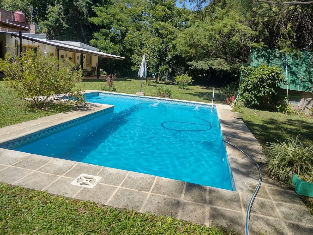 Relájate, Respira, Disfruta. Escapa del bullicio y sumérgete en un entorno de paz y armonía, rodeado por la naturaleza y el silencio. Nuestro amplio parque verde y la piscina te ofrecen el espacio perfecto para relajarte y disfrutar de una estancia tranquila y cómoda. Ubicada en las afueras de Colón, cerca de la Ruta 135, nuestra cabaña es el refugio ideal para quienes viajan en auto y buscan un lugar apartado y accesible. Parque y pileta compartidos ( 6 personas máximo). Toallas no incluidas.