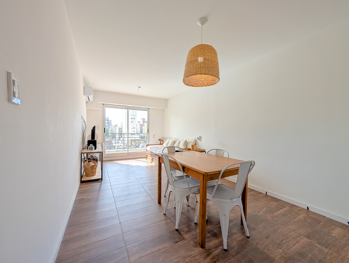 Departamento con balcón, vista a la calle, orientación este y muy luminoso. Está situado a tres cuadras de una de las zonas turísticas más atractivas de Rosario. Allí se concentra una variada oferta gastronómica, cultural y de esparcimiento. Es una calle tranquila, a pasos de las áreas parquizadas y del río Paraná y a pocas cuadras del microcentro. Hay numerosas paradas de colectivos muy cerca, lo cual permite moverse fácil y rápidamente hacia cualquier destino.