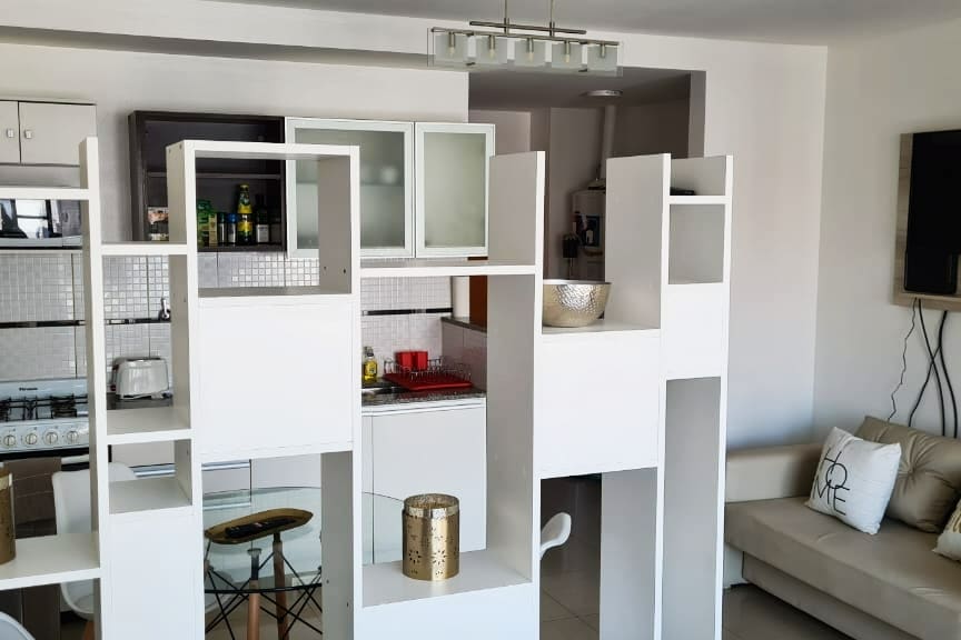 El alojamiento es un monoambiente muy luminoso y confortable, ventilación cruzada. El departamento se encuentra ubicado en el segundo piso se accede por escaleras. El mismo se encuentra en proceso de decoración especialmente para nuestros huéspedes y posee una cocina con amoblamientos amplios y muy completa (horno eléctrico, anafe eléctrico, cafetera, tostadora, heladera, pava elèctrica).