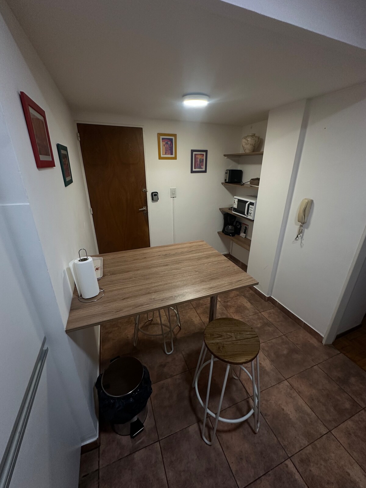 El departamento se encuentra sobre la peatonal de concordia. A metros de la plaza principal, zona de bares y restaruantes. Fue hecho a nuevo hace tres meses, amueblado y decorado con un diseño acogedor. Cuenta con sabanas, toallas, cocina completa, aire acondicionado y baño con ducha. Ideal para parejas, familias o viajes de negocio. El estacionamiento es techado y está incluido en el precio. Se encuentra a 2 cuadras del departamento.