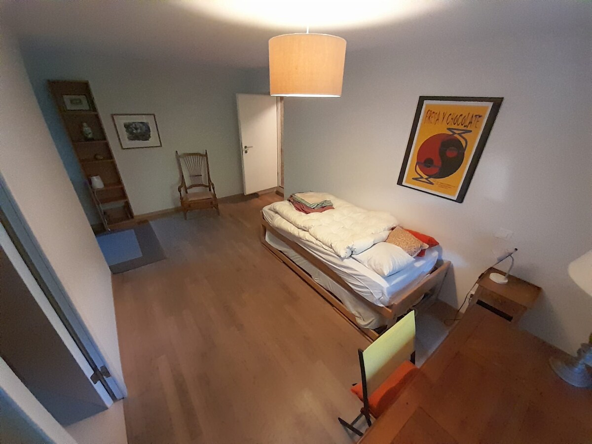 1 minutes à pied de la gare de Salvan. Cet hébérgement est idéal pour les touristes visitant la Vallée du Trient, particulièrement pour les amateurs d'activités en montagne tels que les guides accompagnés de leurs clients, les grimpeurs, les alpinistes, les skieurs, les cyclistes, les randonneurs, les familles actives, etc. Rocio, Owen et leurs jumelles, habitent en-dessous, sont guides de haute montagne et seront ravis de vous renseigner sur les activités en montagne.