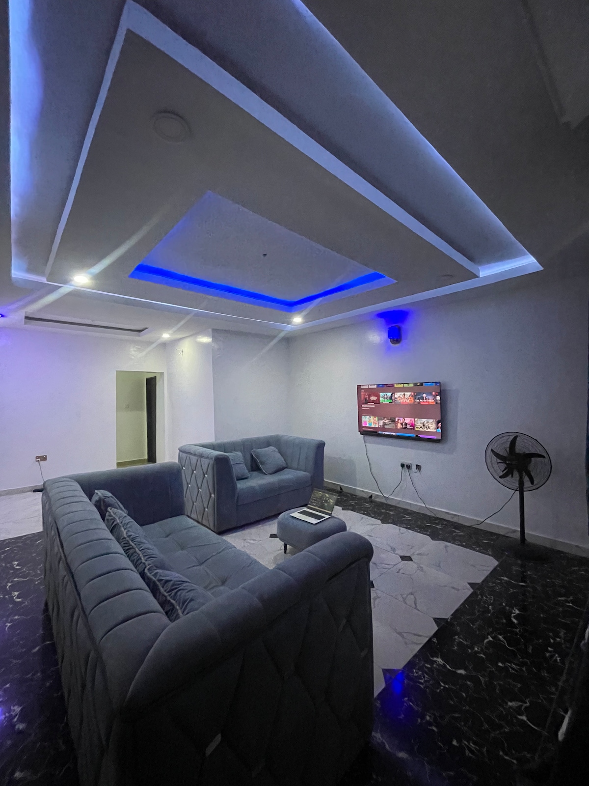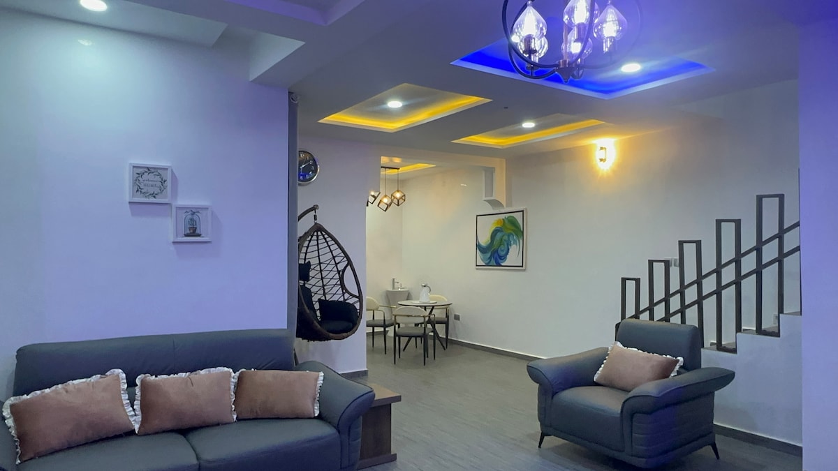 Welcome to our spacious 3-bedroom apartment, conveniently located near the airport in a serene, quiet, and secure neighborhood. Ideal for families, groups, and business travelers, the apartment offers 3 ensuite bedrooms for added privacy and comfort. Enjoy a fully equipped kitchen, generous living spaces, and reliable backup power supply for a smooth stay. Perfect for guests seeking comfort, convenience, security, and easy airport access in a calm setting.