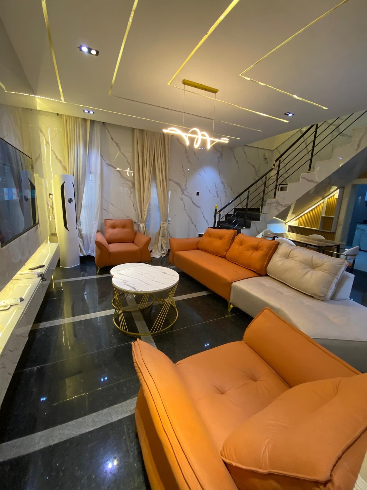 Step into our welcoming 3-bedroom duplex. Enjoy a stylish and thoughtfully designed space, with jacuzzi and well equipped kitchen. Experience the joy of seamless connectivity with fast WiFi, ensuring you stay connected effortlessly. Unwind the day with your favorite shows on Netflix, your stay here promises not just comfort but a seamless blend of modern amenities, making it a perfect home base for your Enugu visit. 30 secs drive from DSS office, 2 mins drive from SARS office and shop rite mall