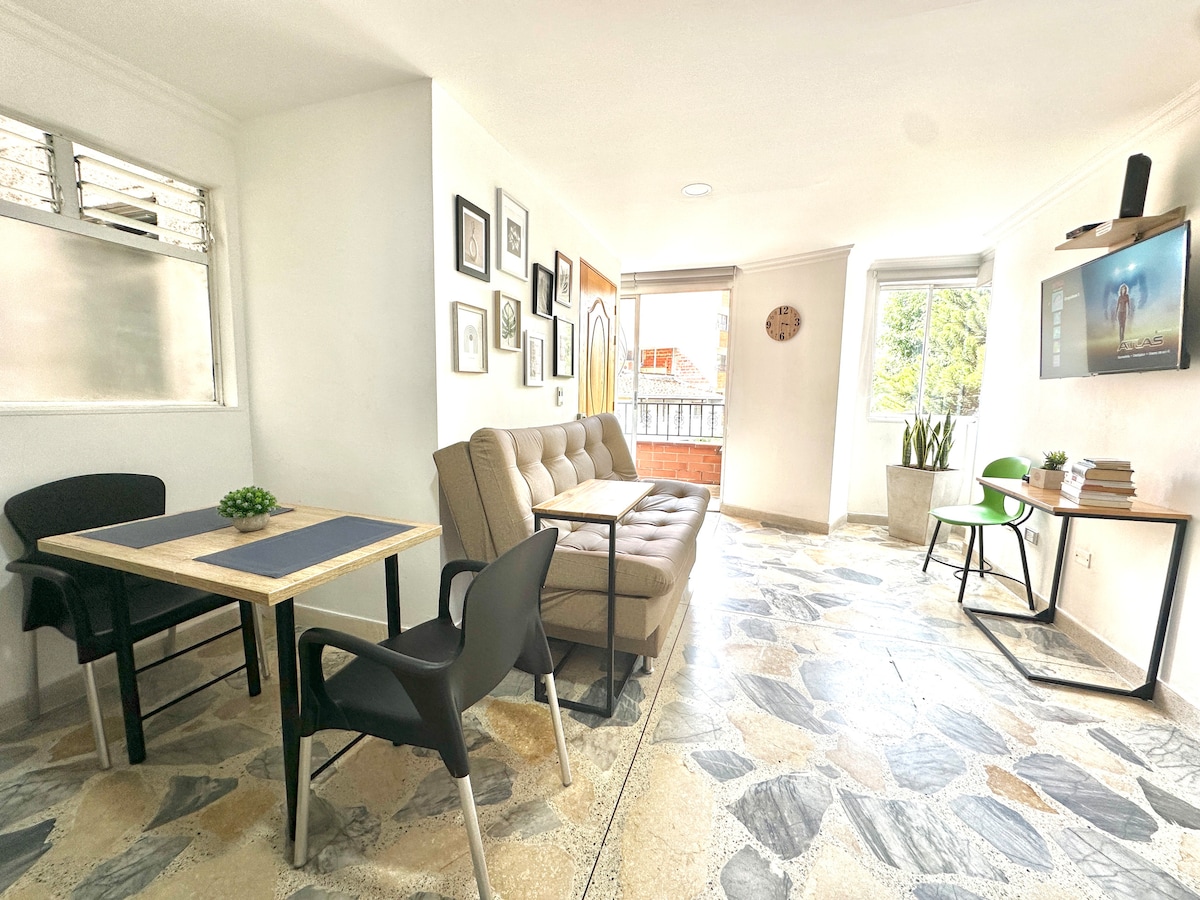 Apartamento muy cómodo con baño, una habitacion con cama king, cocina, espacio de trabajo con Internet de 300 M, televisor de 43'' smart tv, 2 baños, vestier, colchón o sofá cama para persona extra. Estarás ubicado en Envigado a 3 cuadras del metro, en un barrio tranquilo que representa las tradiciones de Medellín, cafés y tiendas en cada esquina, zonas deportivas.