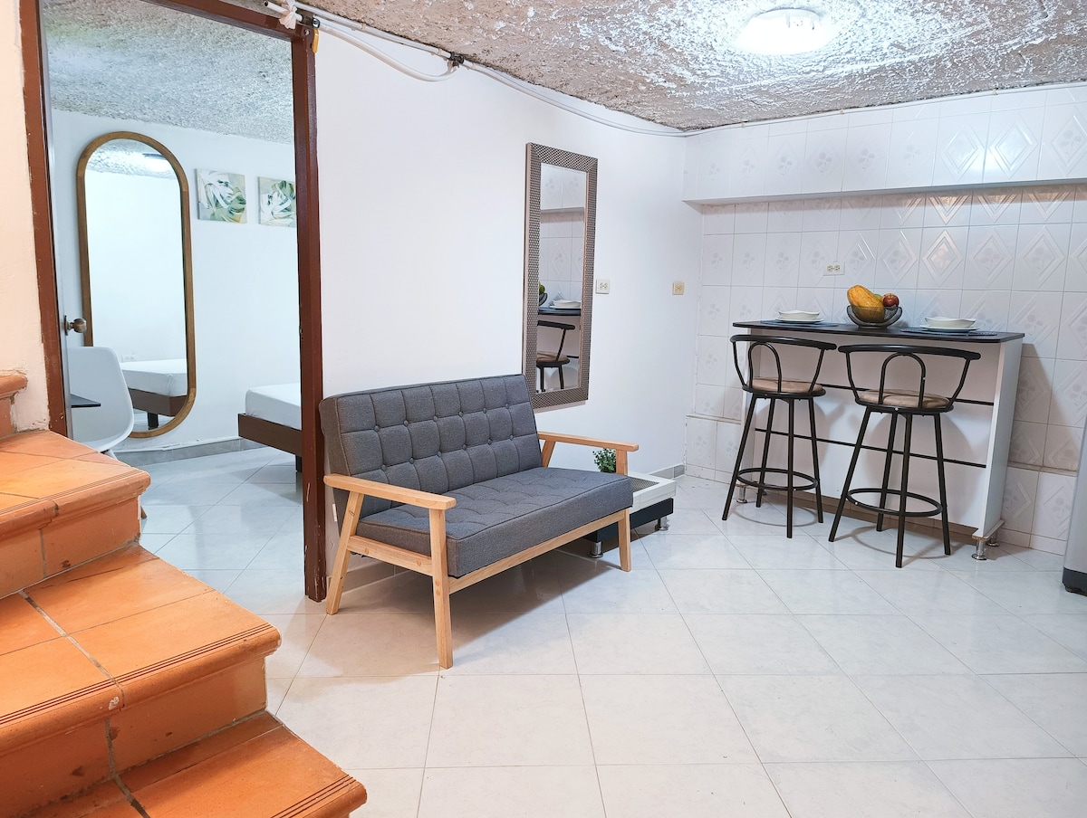 ¿Buscas un espacio privado, cómodo y bien ubicado para tu estadía? 🎉Descuento por lanzamiento Acogedor y moderno apartaestudio, entrada independiente, ideal para nómadas digitales y viajeros en busca de comodidad y tranquilidad. Ubicado en un nivel semisótano, ofrece un ambiente tranquilo, con excelente Wi-Fi , espacio de trabajo, cocina completa y una cama realmente cómoda.